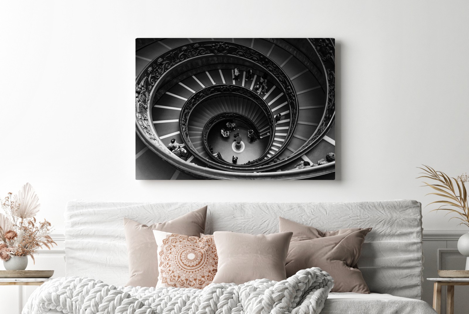 Obraz na płótnie Dramtyczne spiralne schody w monochromii