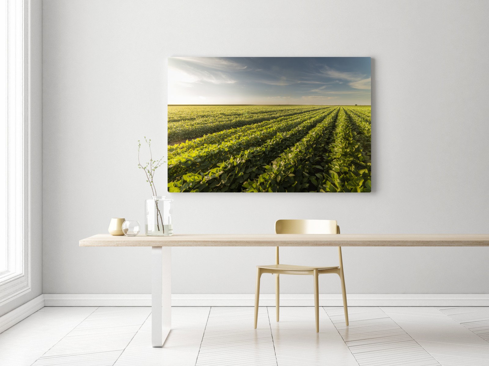 Obraz na płótnie Słoneczne pole soi o zmierzchu