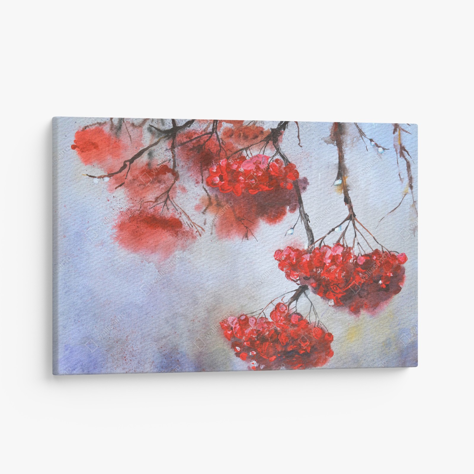 Obraz na płótnie Akwarela czerwonych jagód na gałęziach