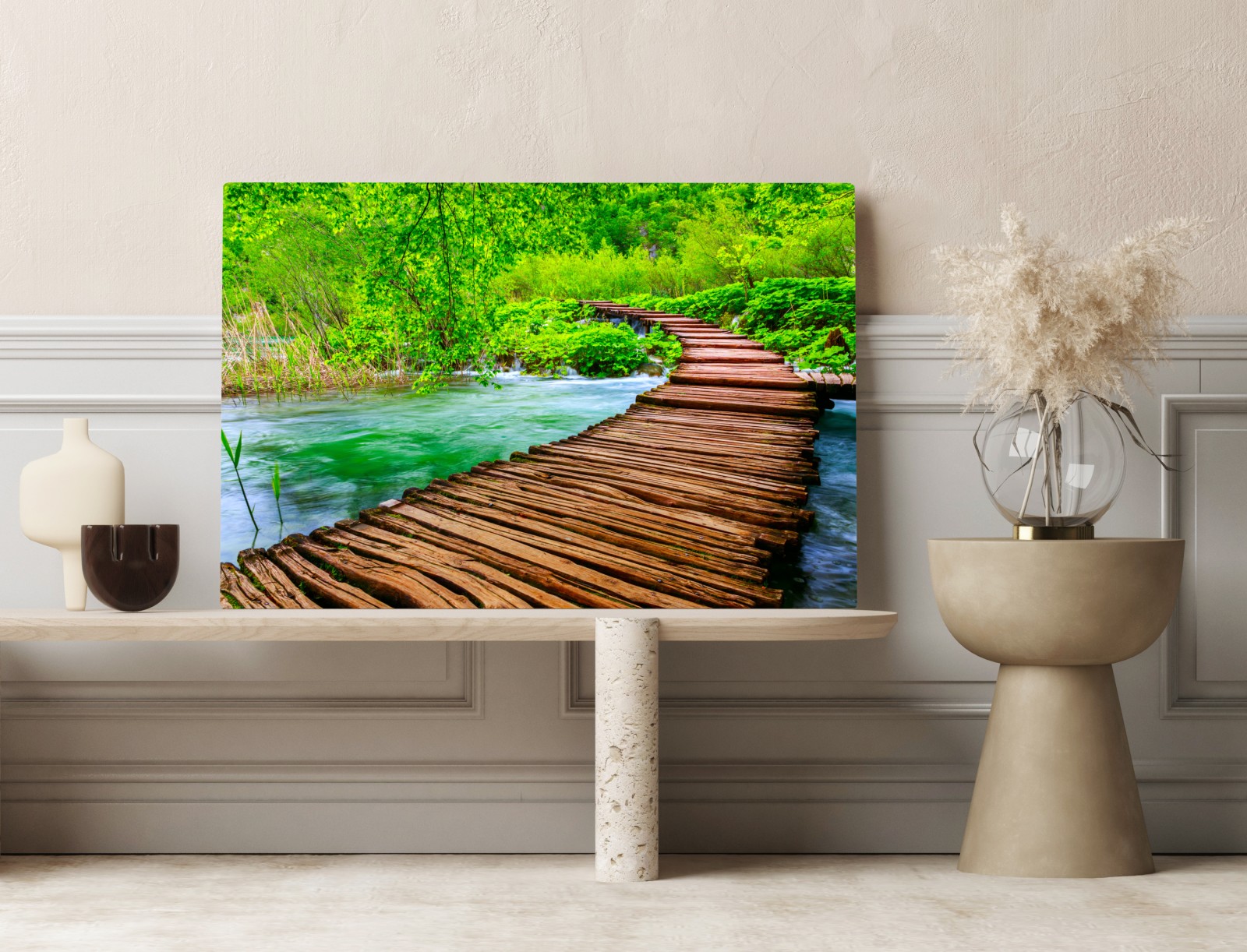 Obraz na płótnie Spokojna zielona kładka nad rzeką