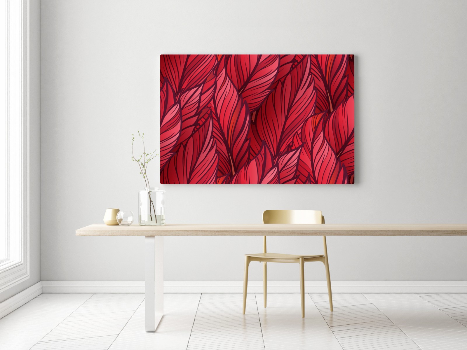 Dodaj odważny botaniczny akcent do wnętrza dzięki temu żywemu czerwonymu wzorowi liści, idealnemu jako wyrazisty punkt centralny.WięcejMniej