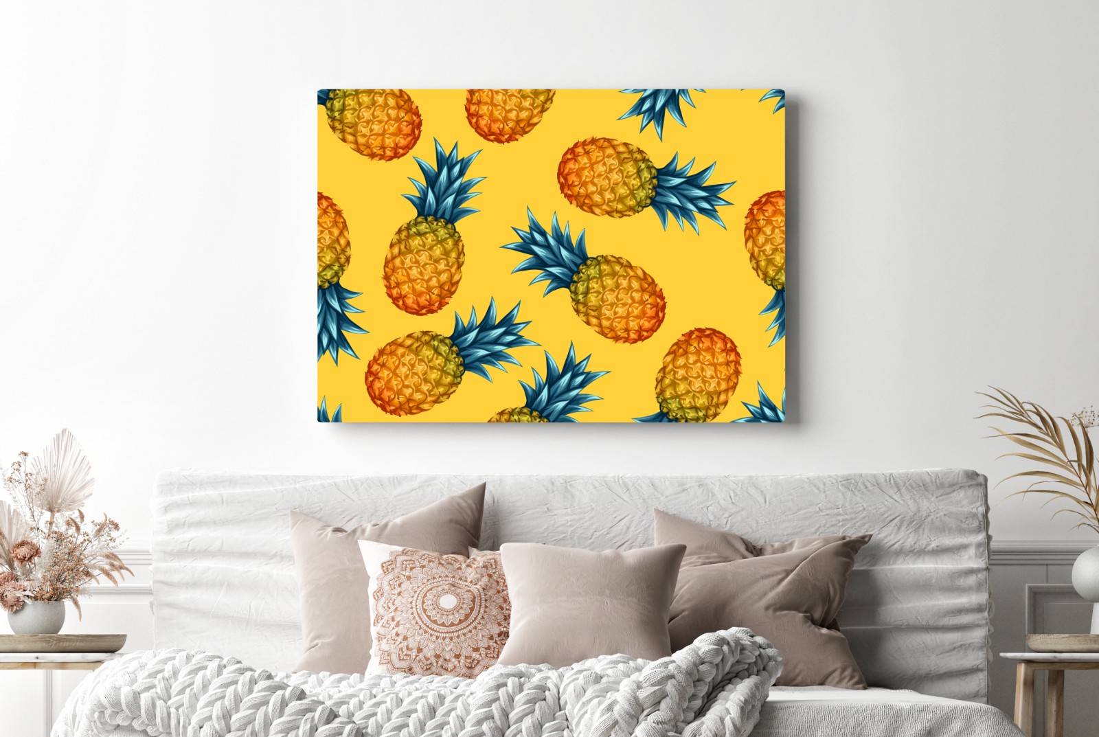 Obraz na płótnie Tropikalny wzór z ananasami na żółtym tle
