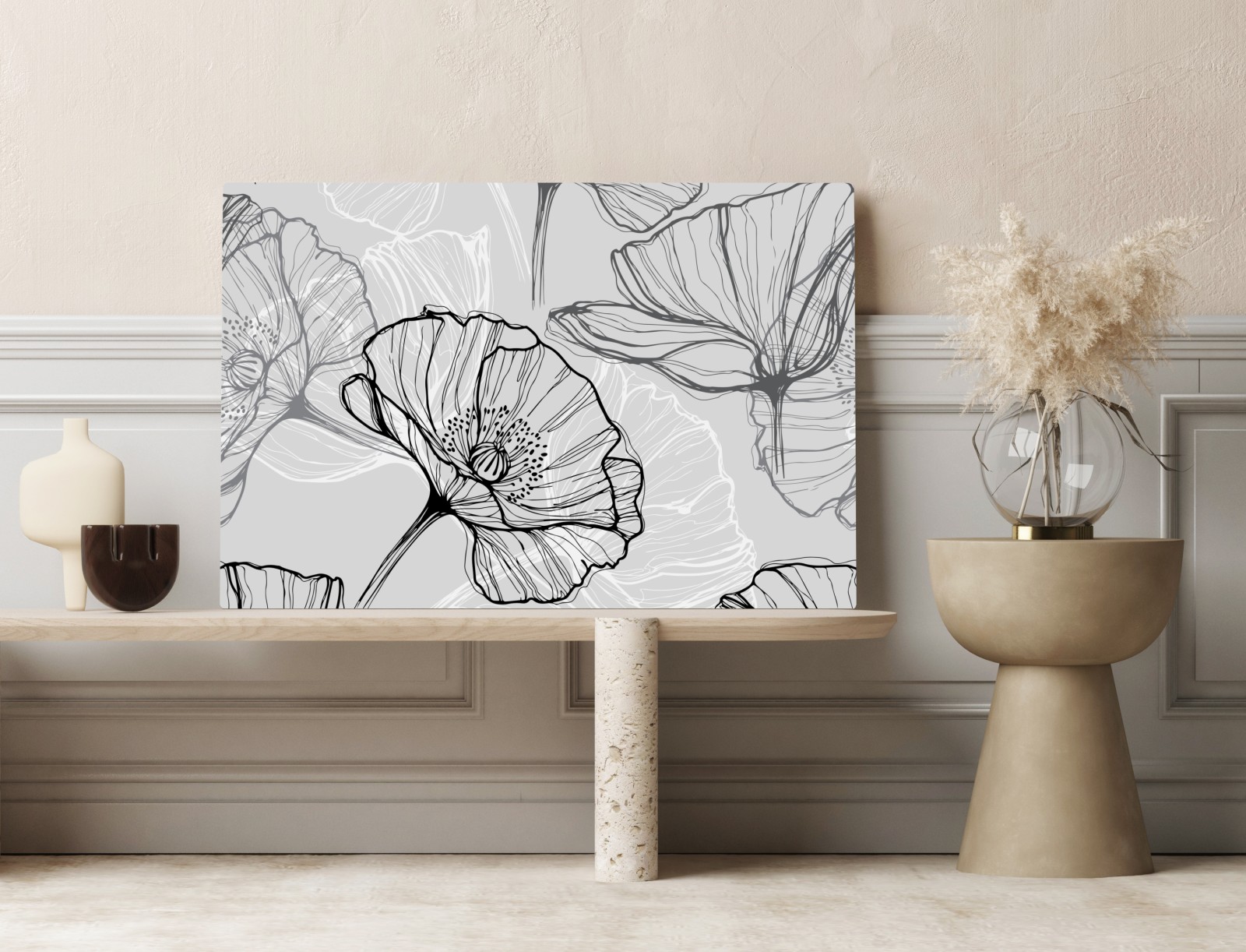 Obraz na płótnie Delikatny szary mak w rysunku liniowym