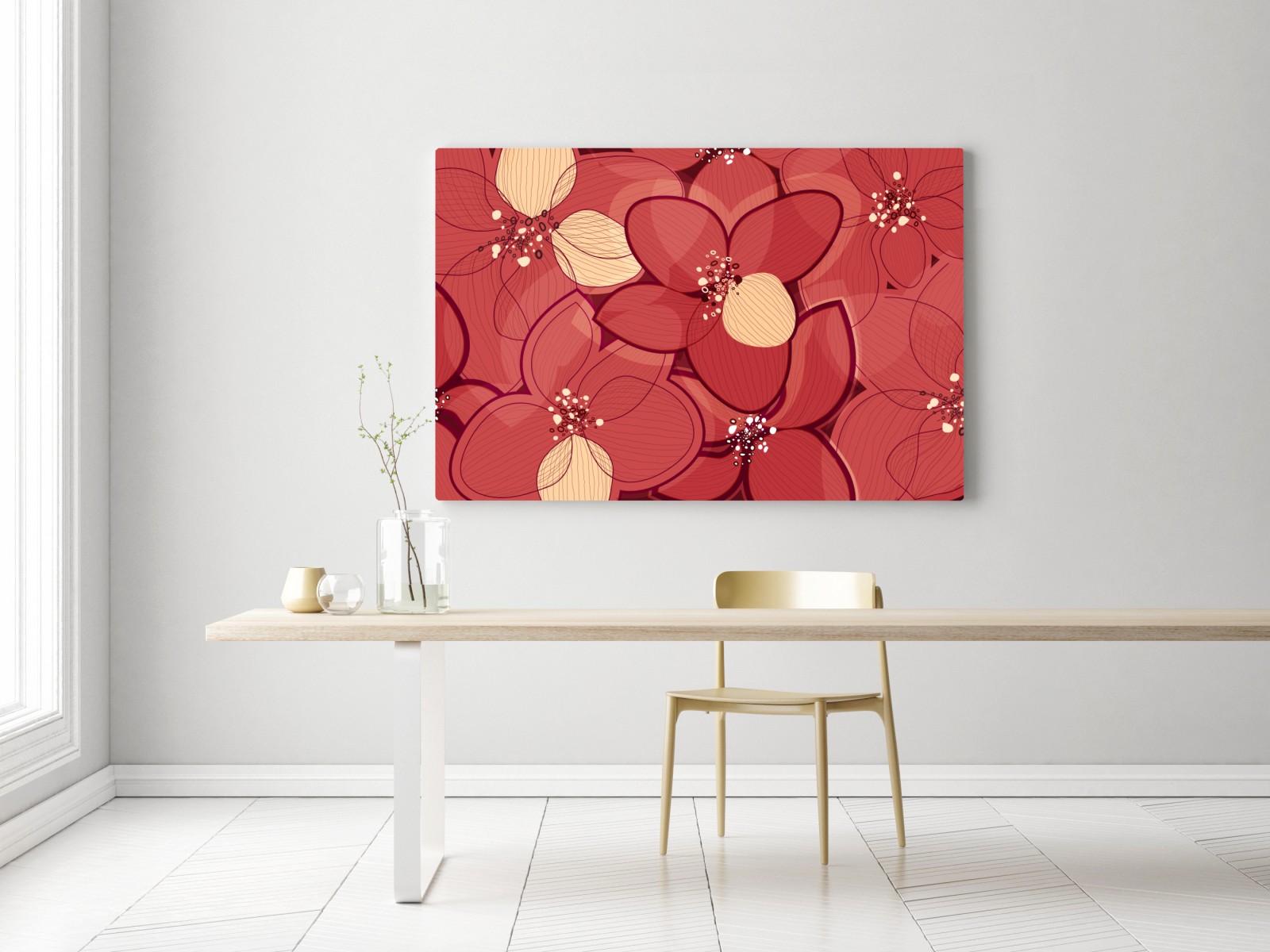 Obraz na płótnie Czerwony kwiatowy wzór z beżowymi środkami