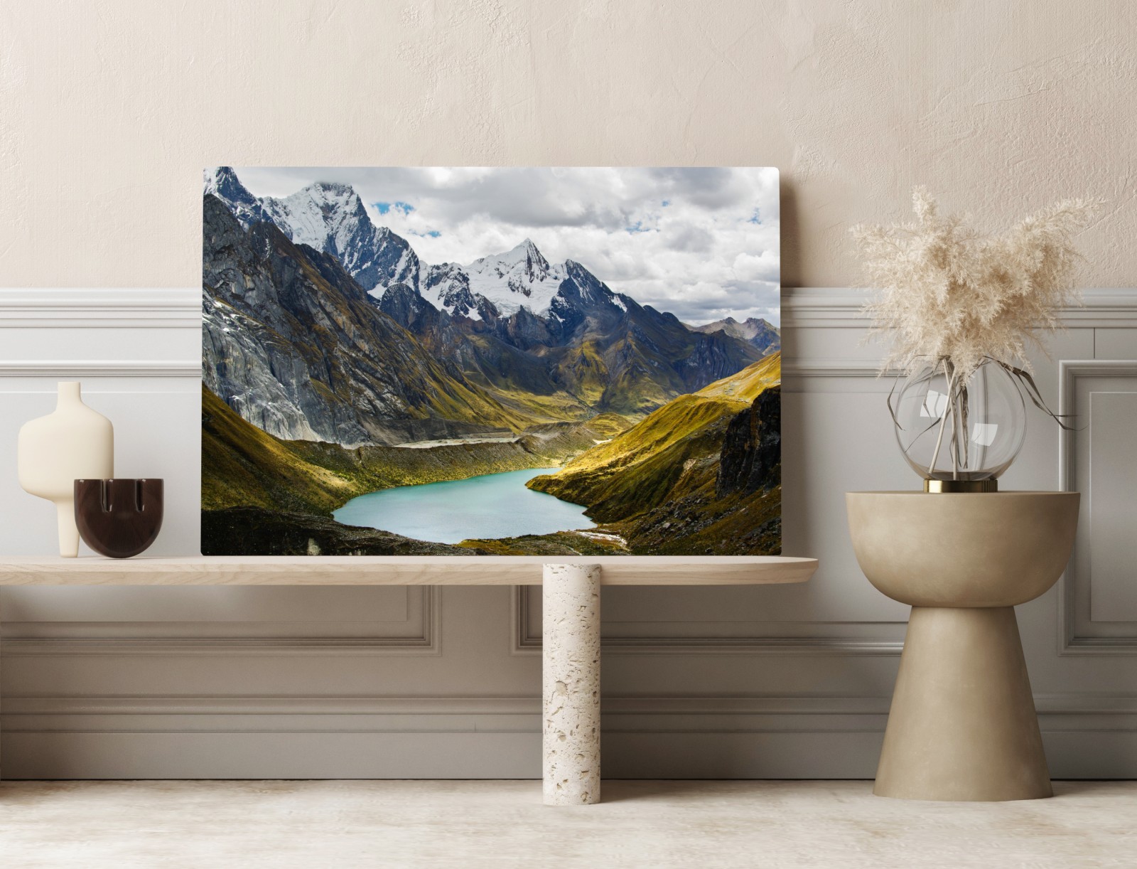 Obraz na płótnie Turkusowe jezioro u stóp zaśnieżonych szczytów
