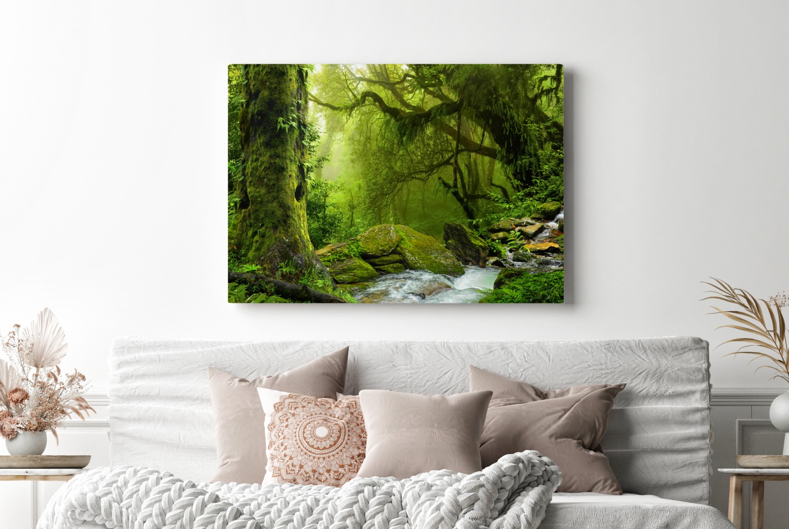 Obraz na płótnie Zaczarowany zielony leśny strumień