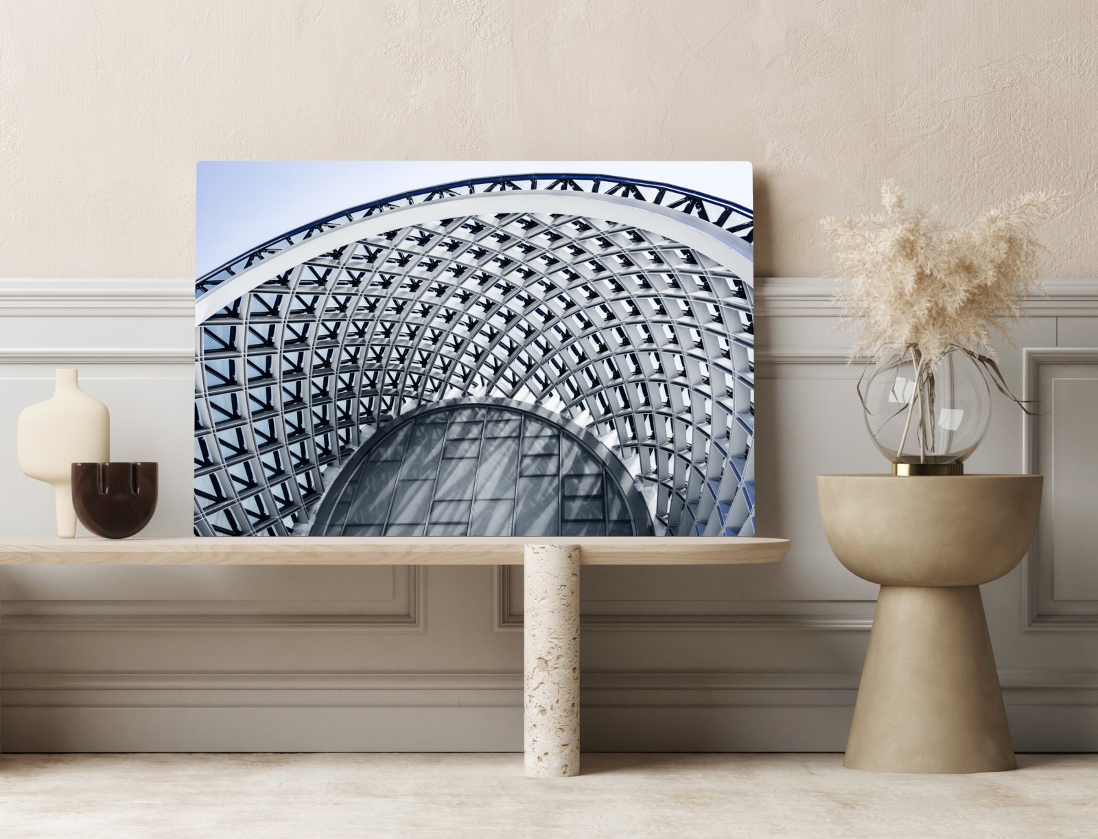 Dodaj nowoczesny akcent do wnętrza dzięki efektownej grafice geometrycznej architektury łączącej czyste linie i dynamiczne krzywizny.WięcejMniej