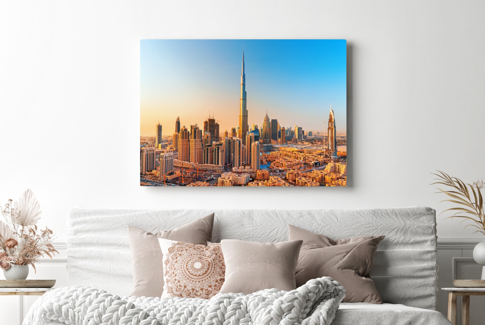 Obraz na płótnie Panorama Dubaju o złotej godzinie