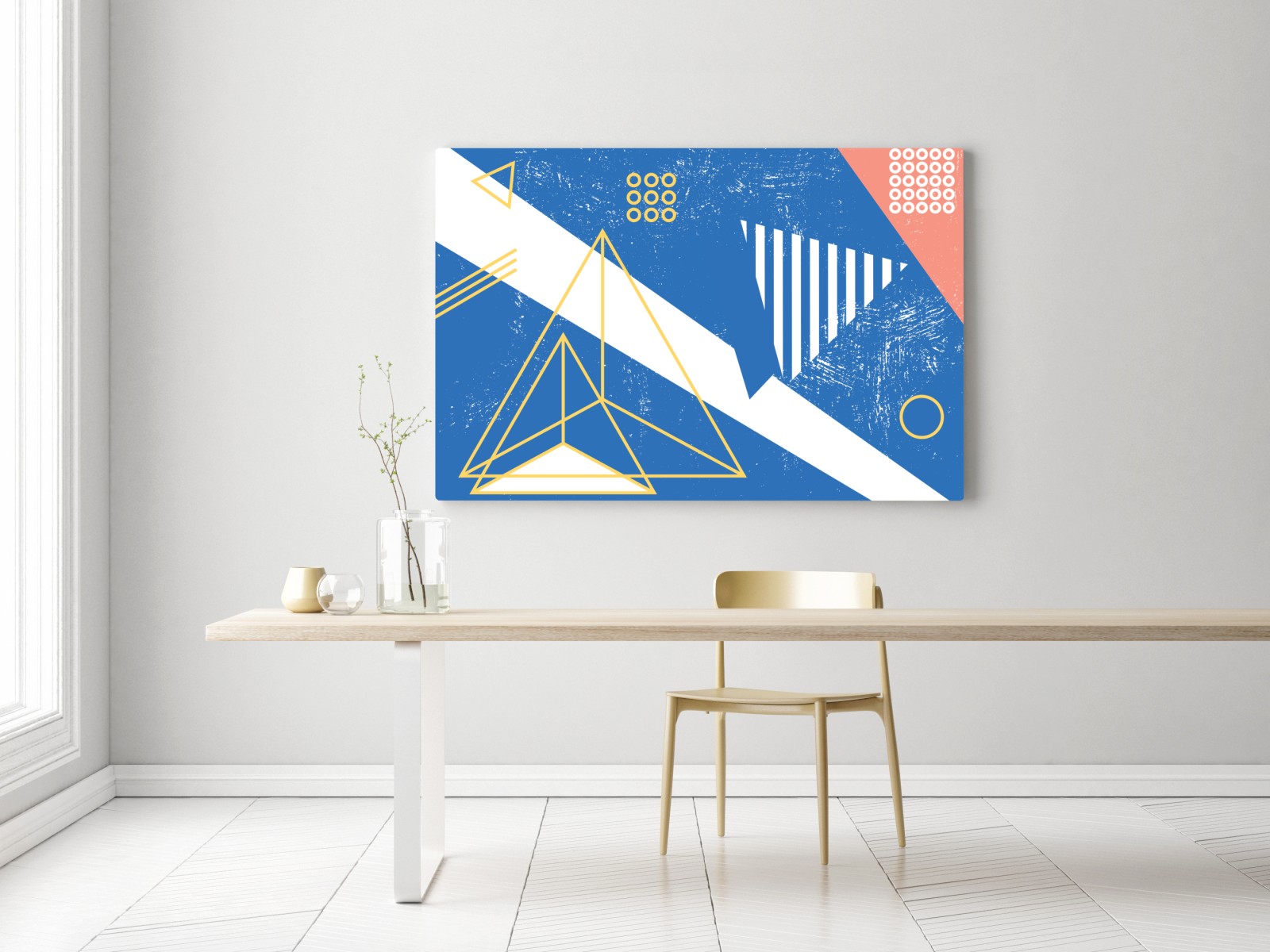 Dodaj odważny nowoczesny akcent do wnętrza dzięki tej geometrycznej niebieskiej grafice z teksturowanym wykończeniem.WięcejMniej