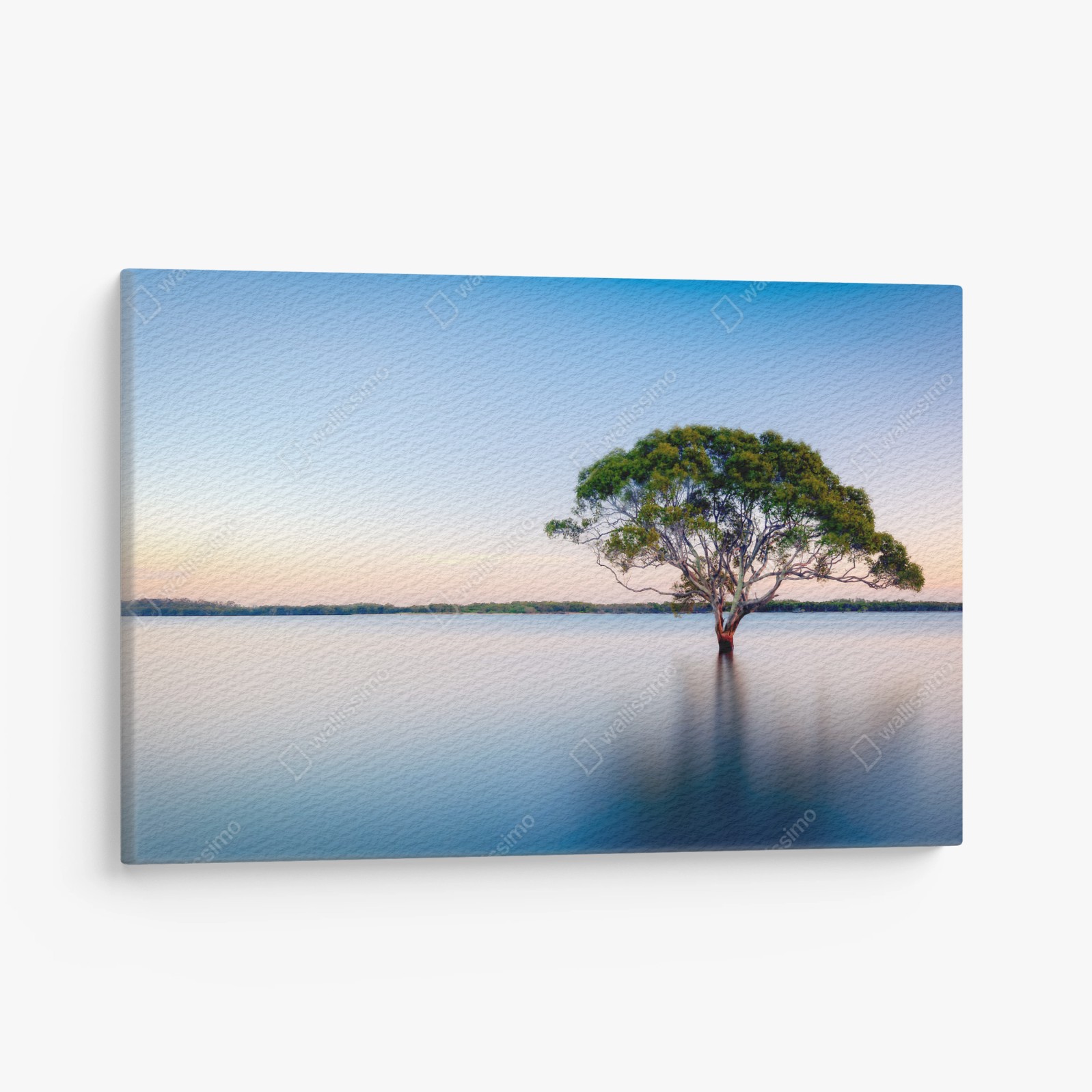 Obraz na płótnie Samotne drzewo nad spokojnym jeziorem