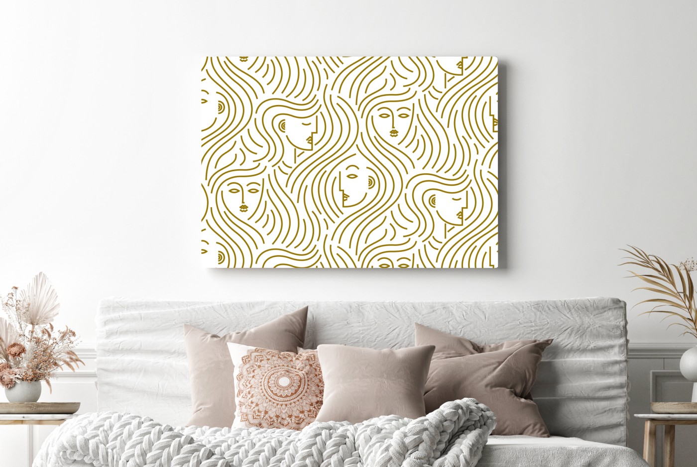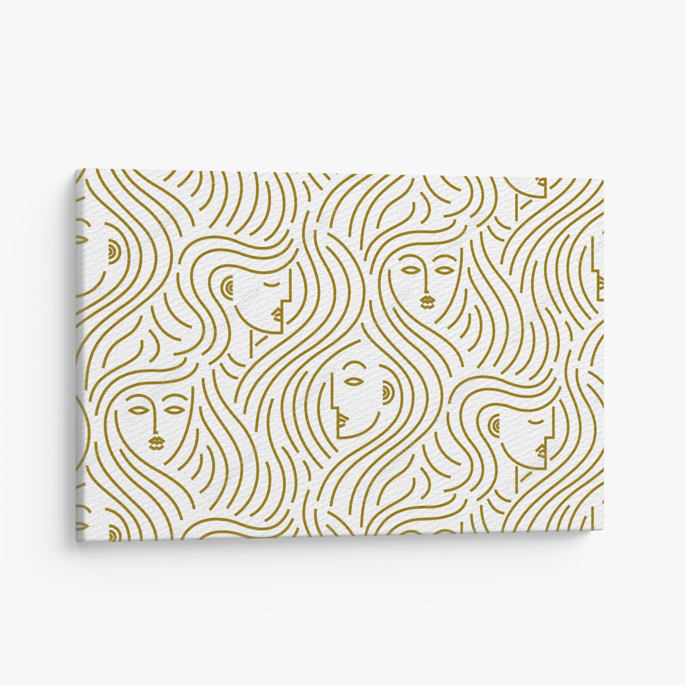 Obraz na płótnie Złote fale i abstrakcyjne twarze bezszwowy wzór