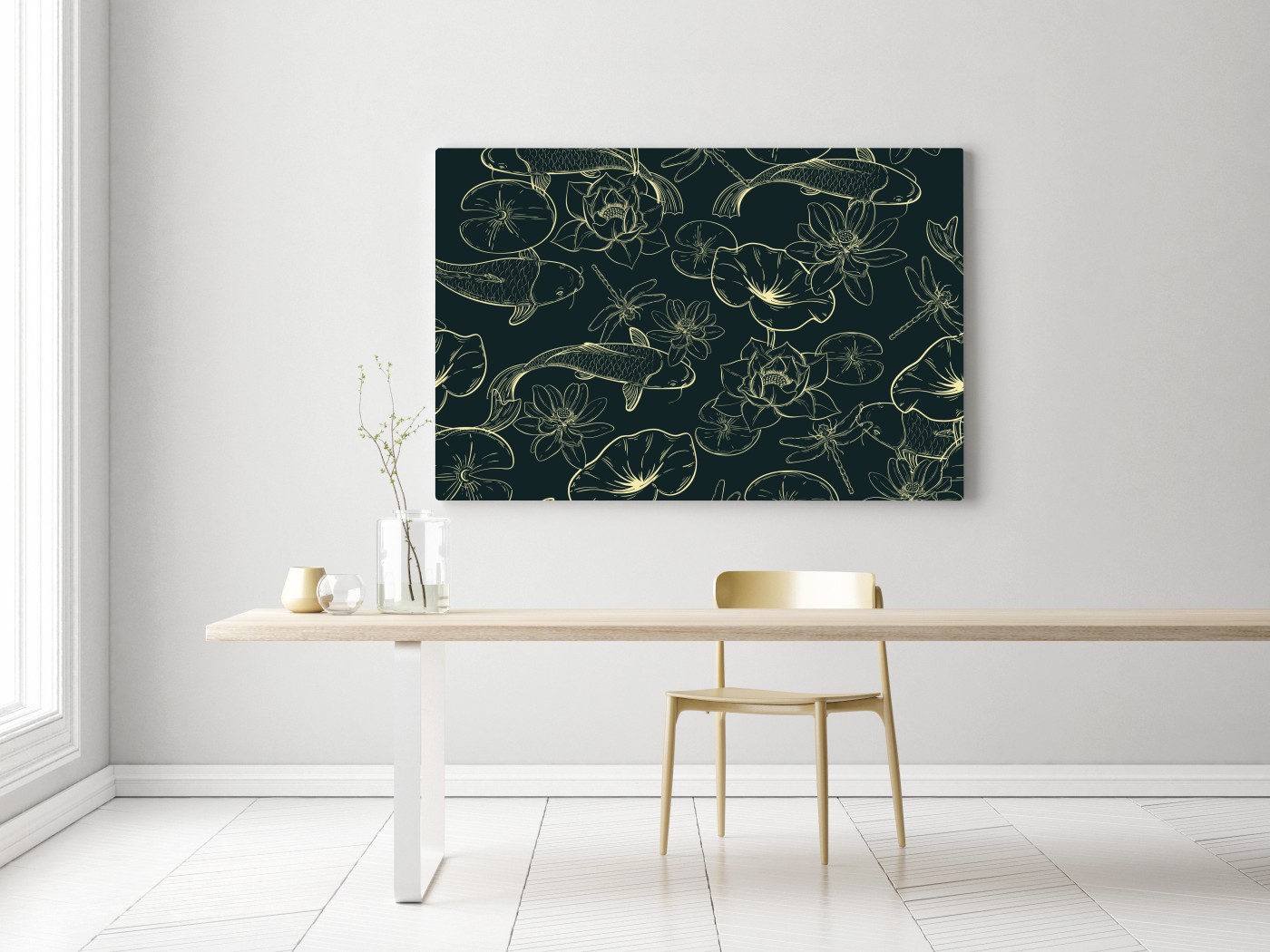 Obraz na płótnie Ręcznie rysowany wzór koi i lotosu