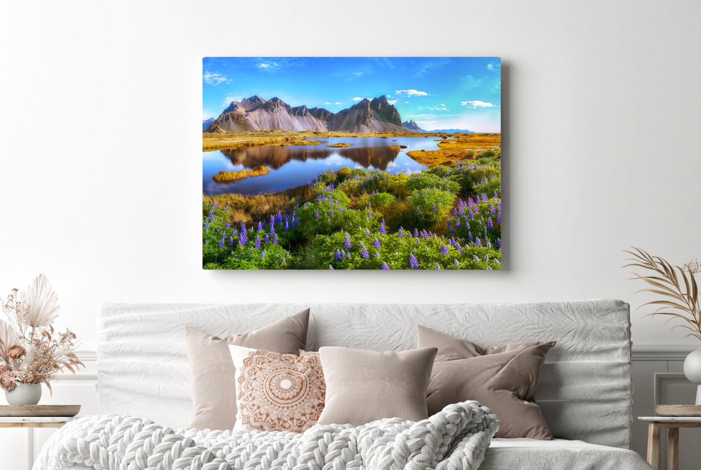 Obraz na płótnie Żywe łubinowe łąki przy Vestrahorn, Islandia