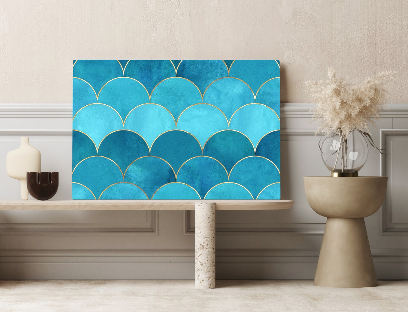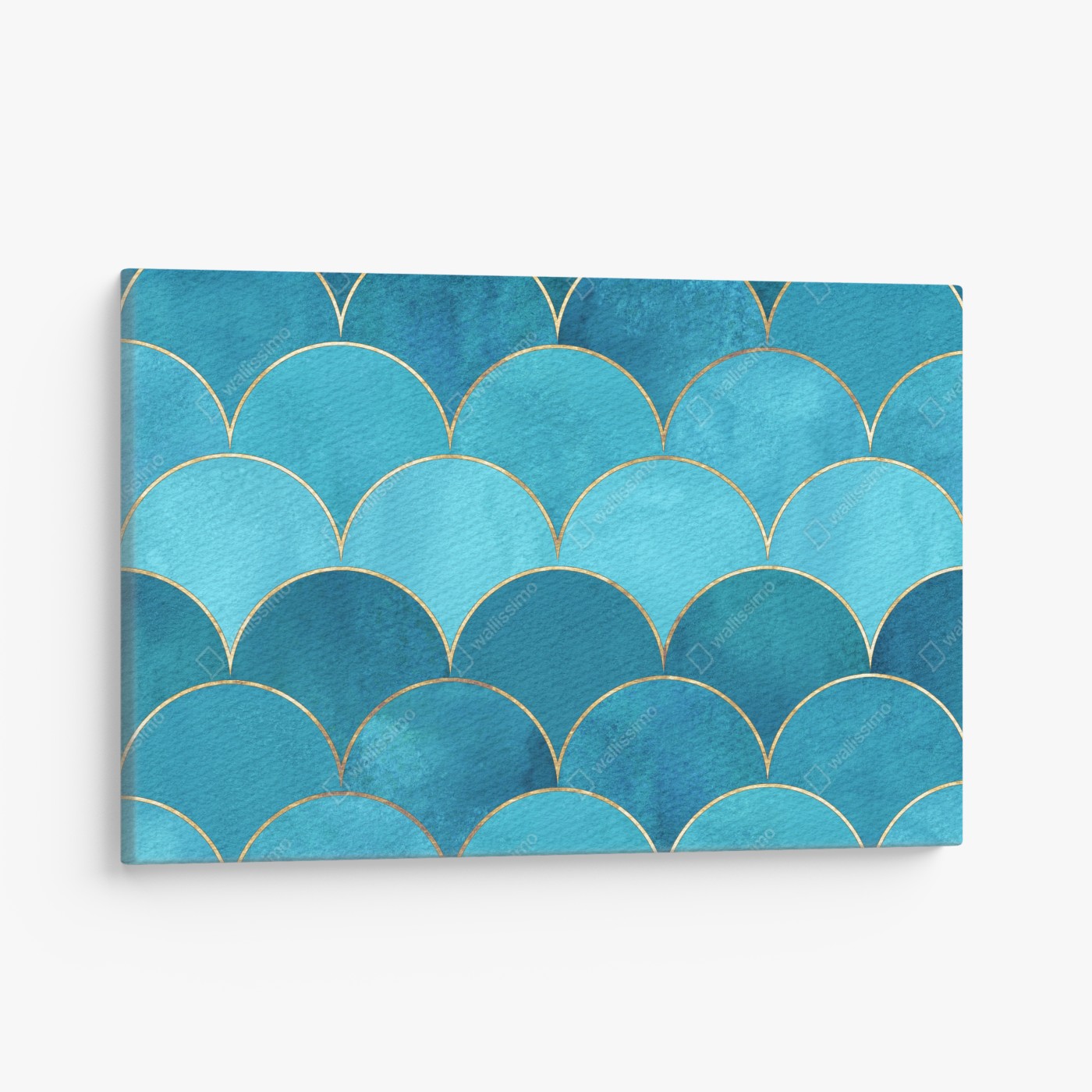 Obraz na płótnie Turkusowy wzór łusek z złotymi detalami