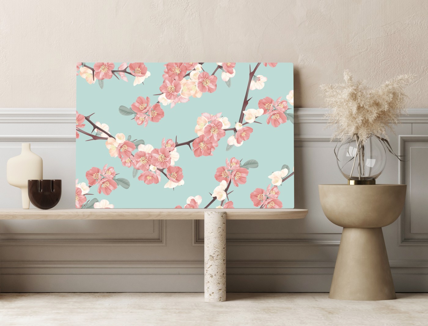 Obraz na płótnie Pastelowy wzór kwiatów wiśni na miętowym tle