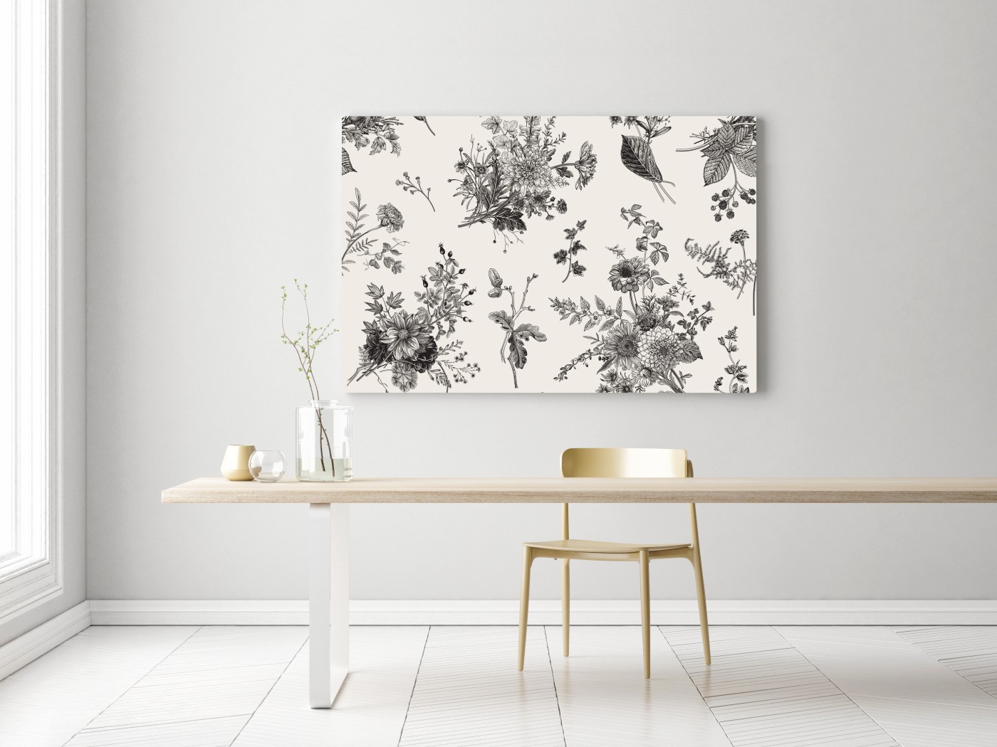 Obraz na płótnie Klasyczny czarno-biały wzór kwiatowy