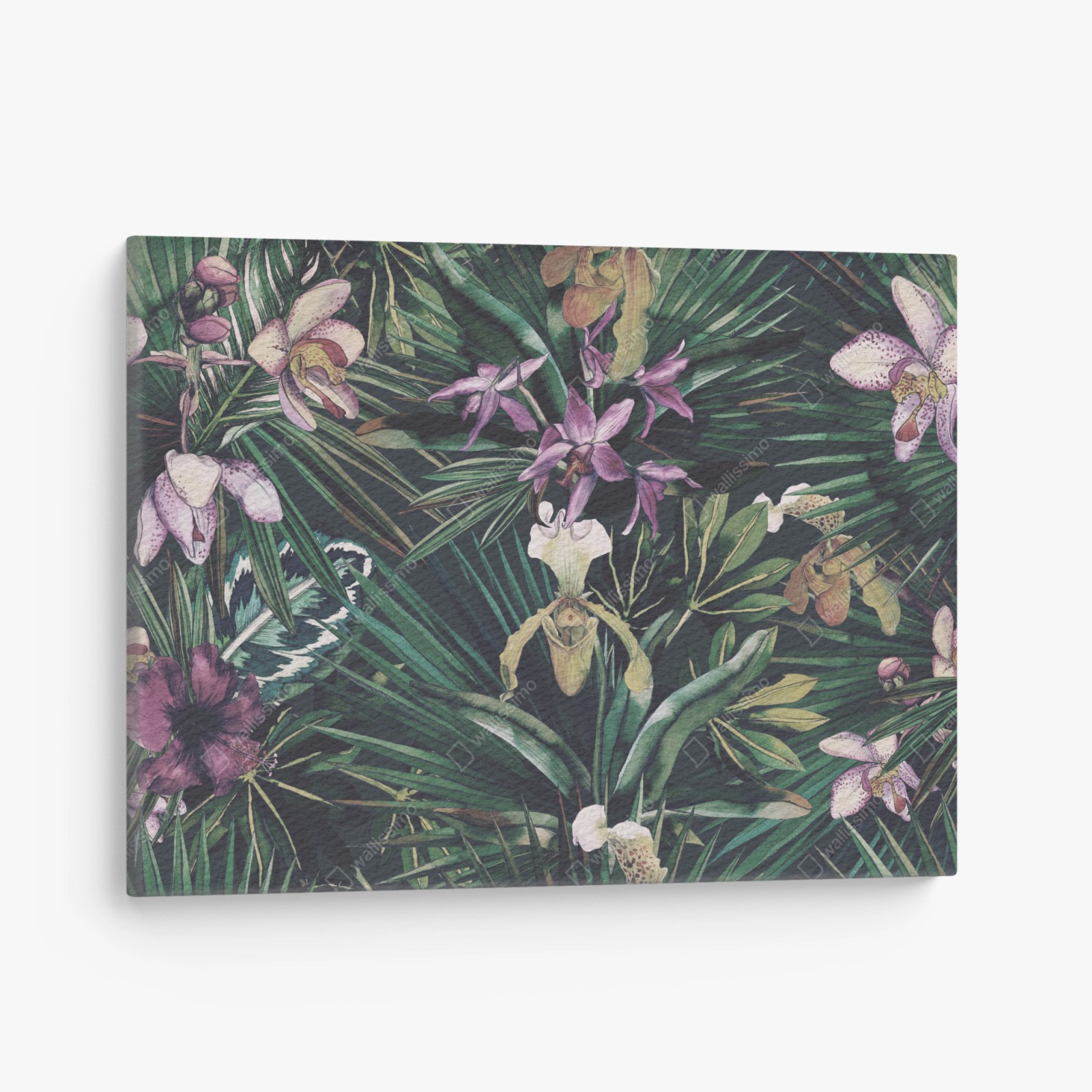 Obraz na płótnie Tropikalne akwarelowe orchidee i liście palmowe