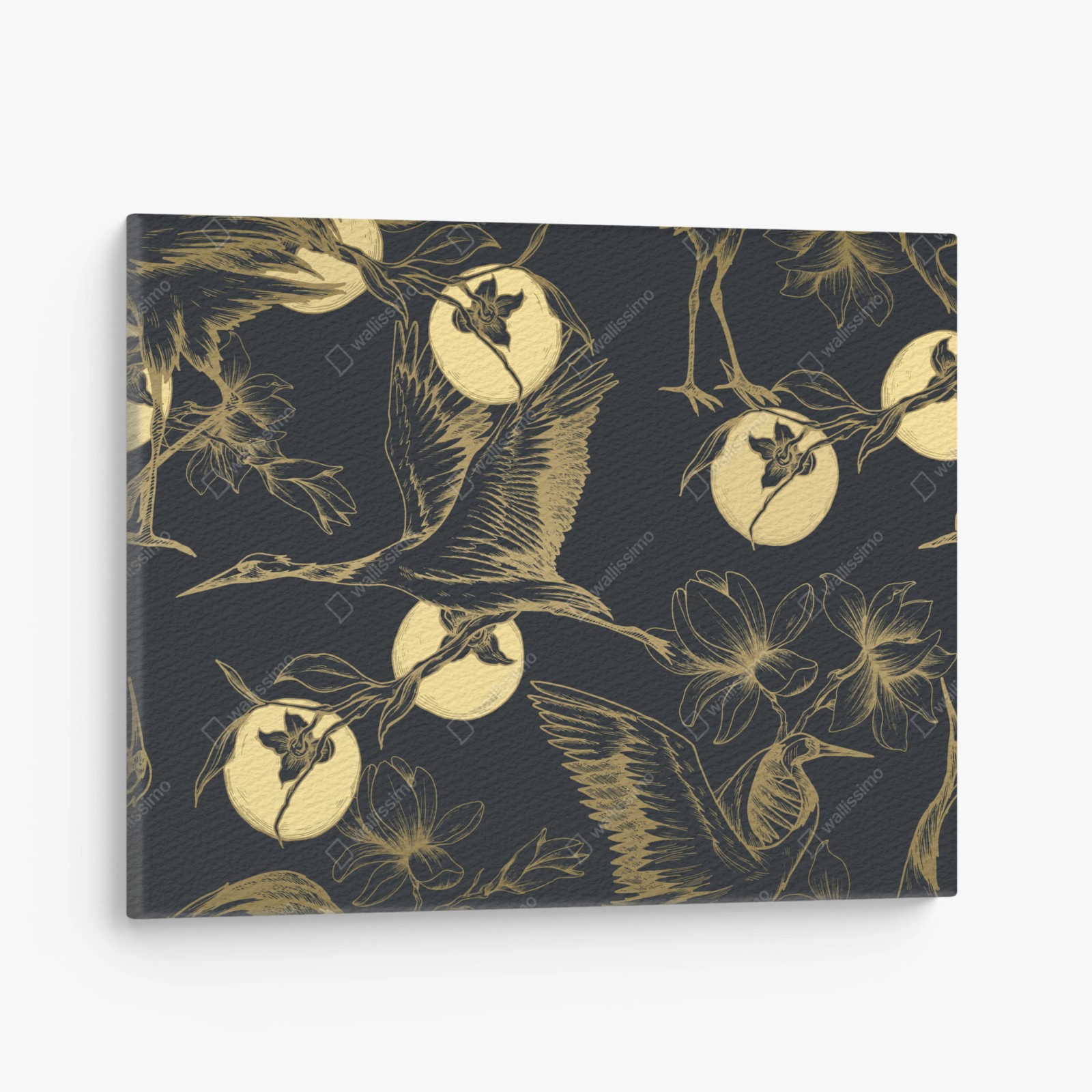 Obraz na płótnie Złote żurawie i księżycowy wzór