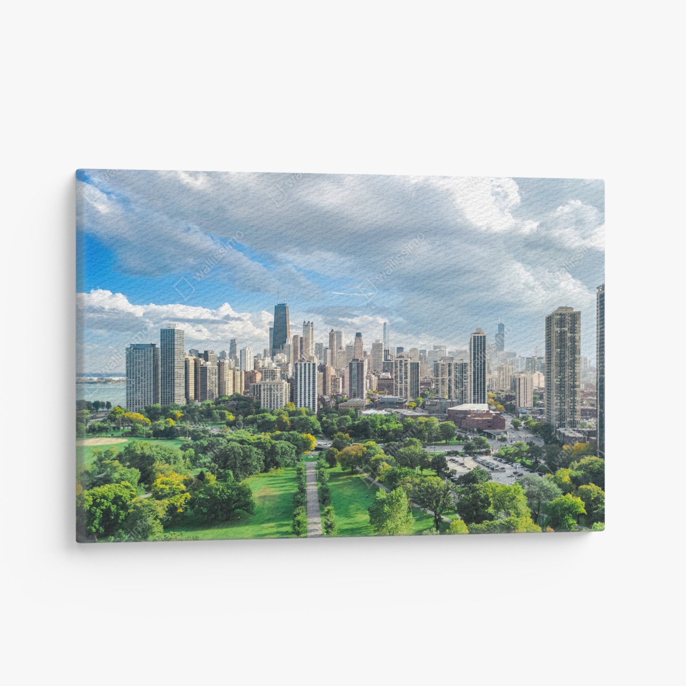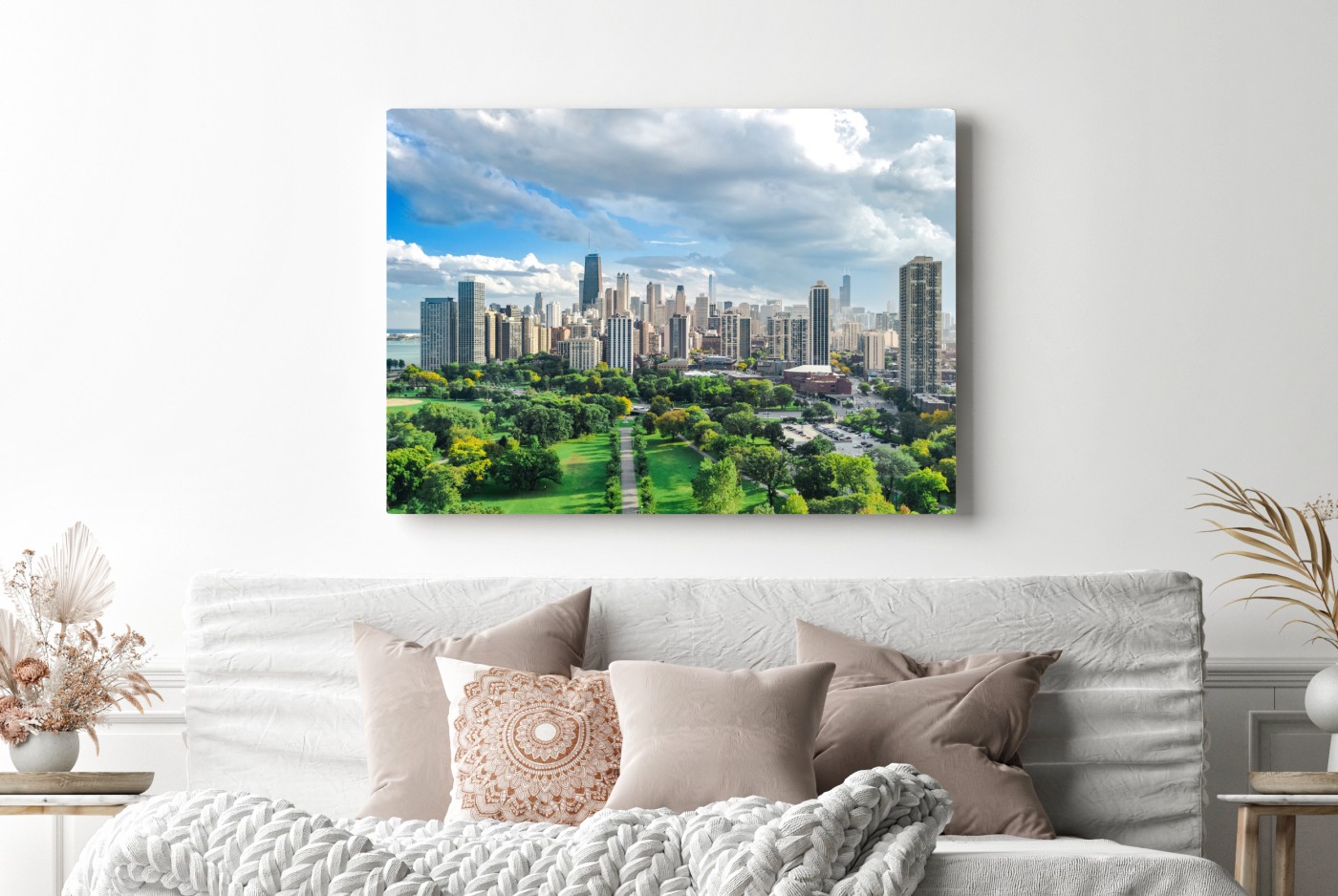 Obraz na płótnie Miejska panorama nad zielonym parkiem