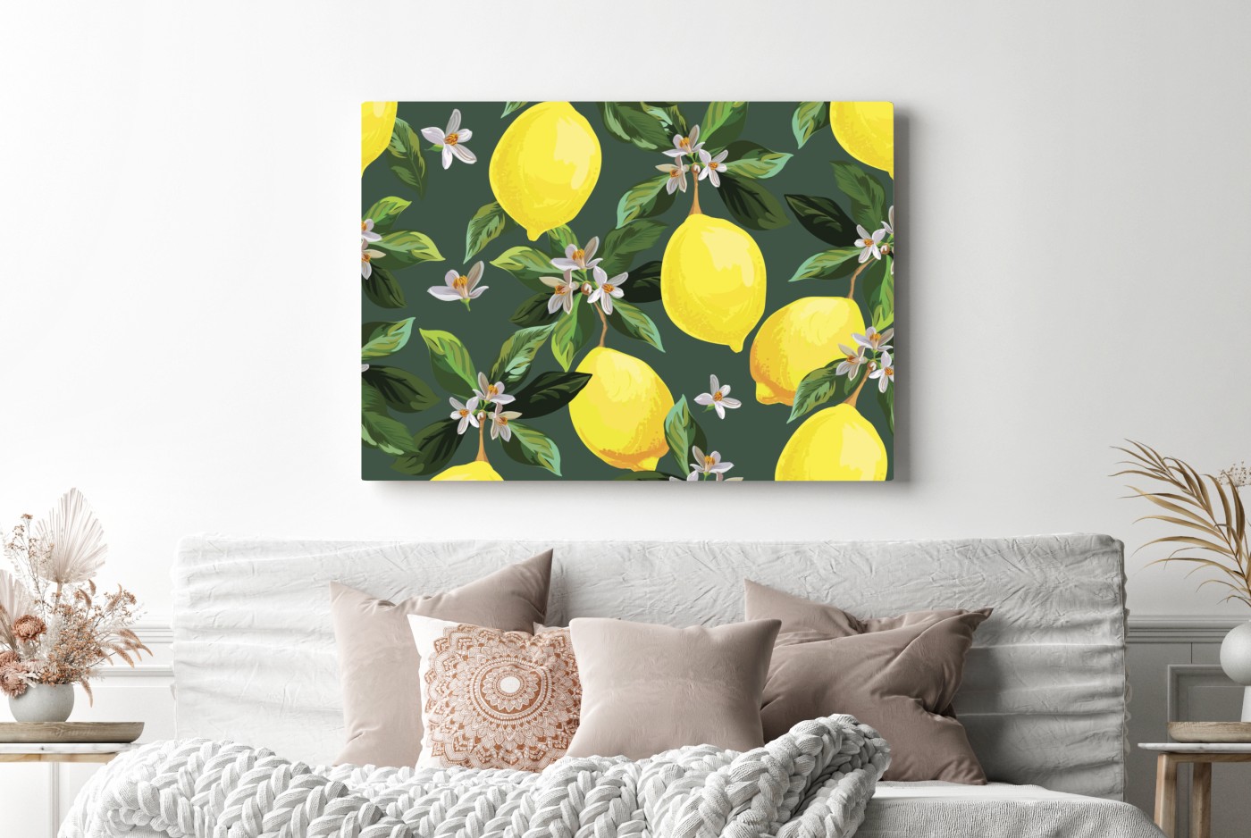 Obraz na płótnie Botaniczny wzór z cytrynami