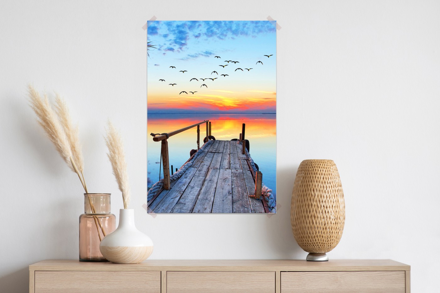 Plakat pomost o zachodzie słońca nad jeziorem – Wallissimo®