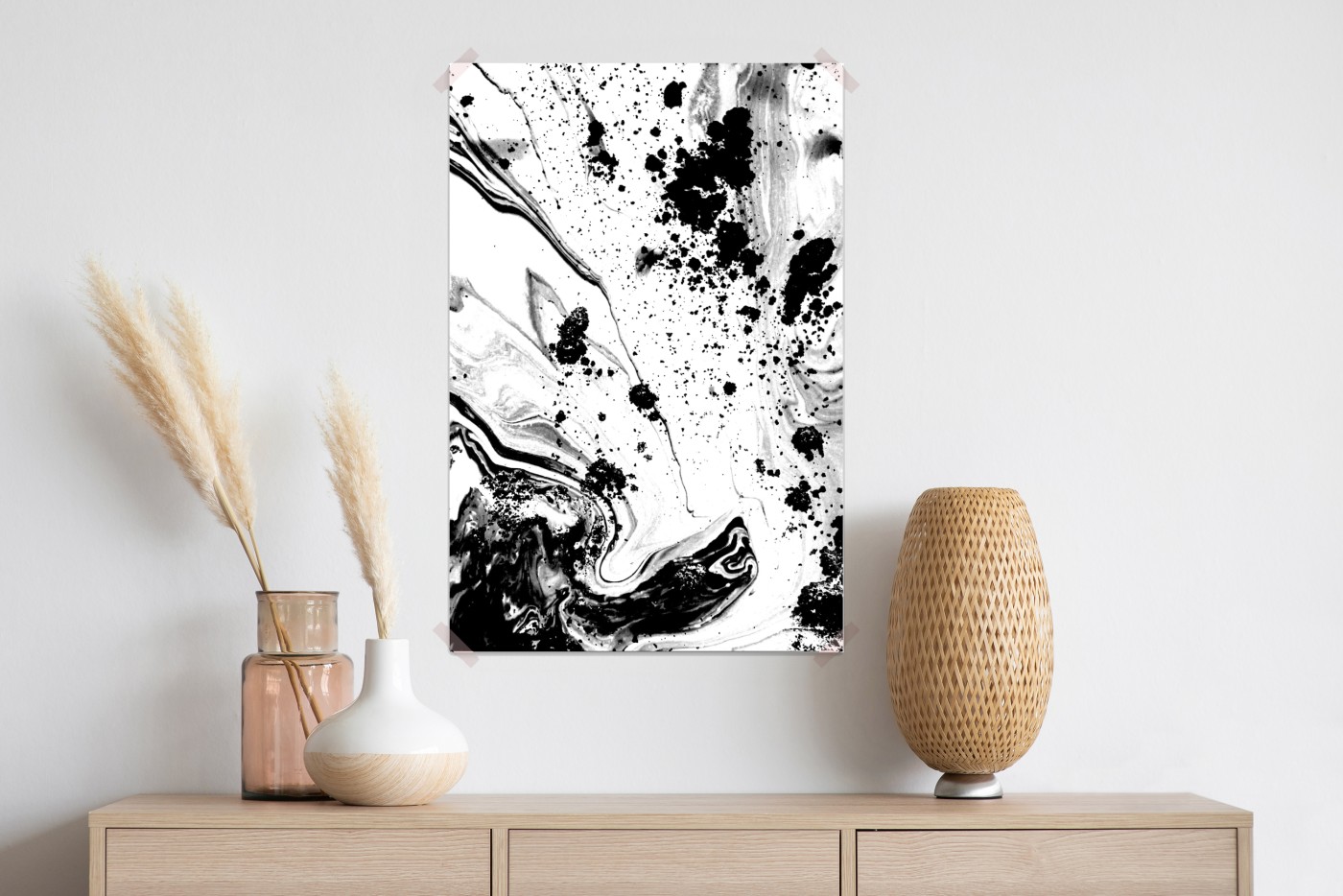 Plakat Monochromatyczny marmur atramentowy abstrakcja