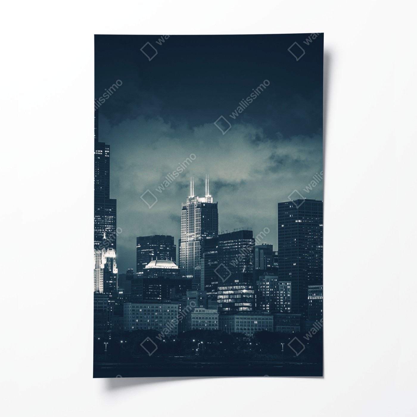 Plakat Chicago panorama miasta w głębokich niebieskich tonach – Wallissimo®