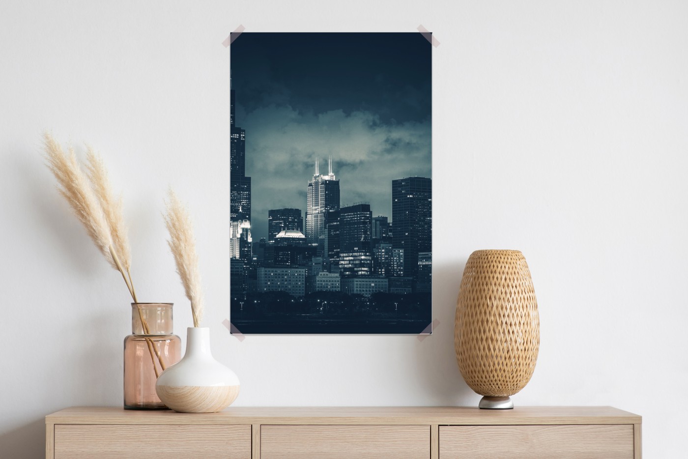 Plakat Chicago panorama miasta w głębokich niebieskich tonach