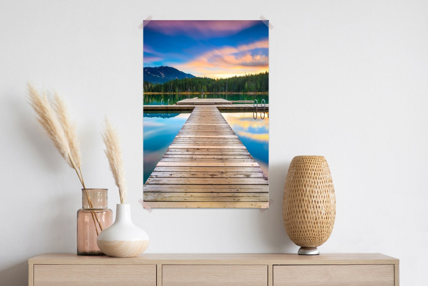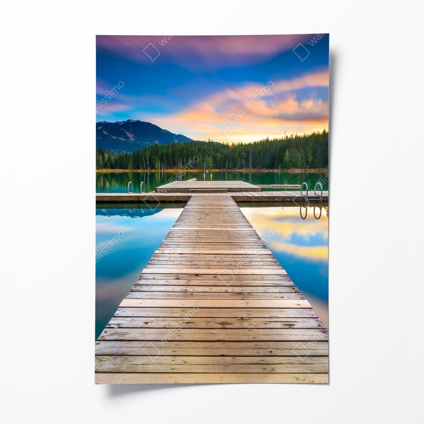 Plakat Spokojne górskie jezioro o zachodzie słońca