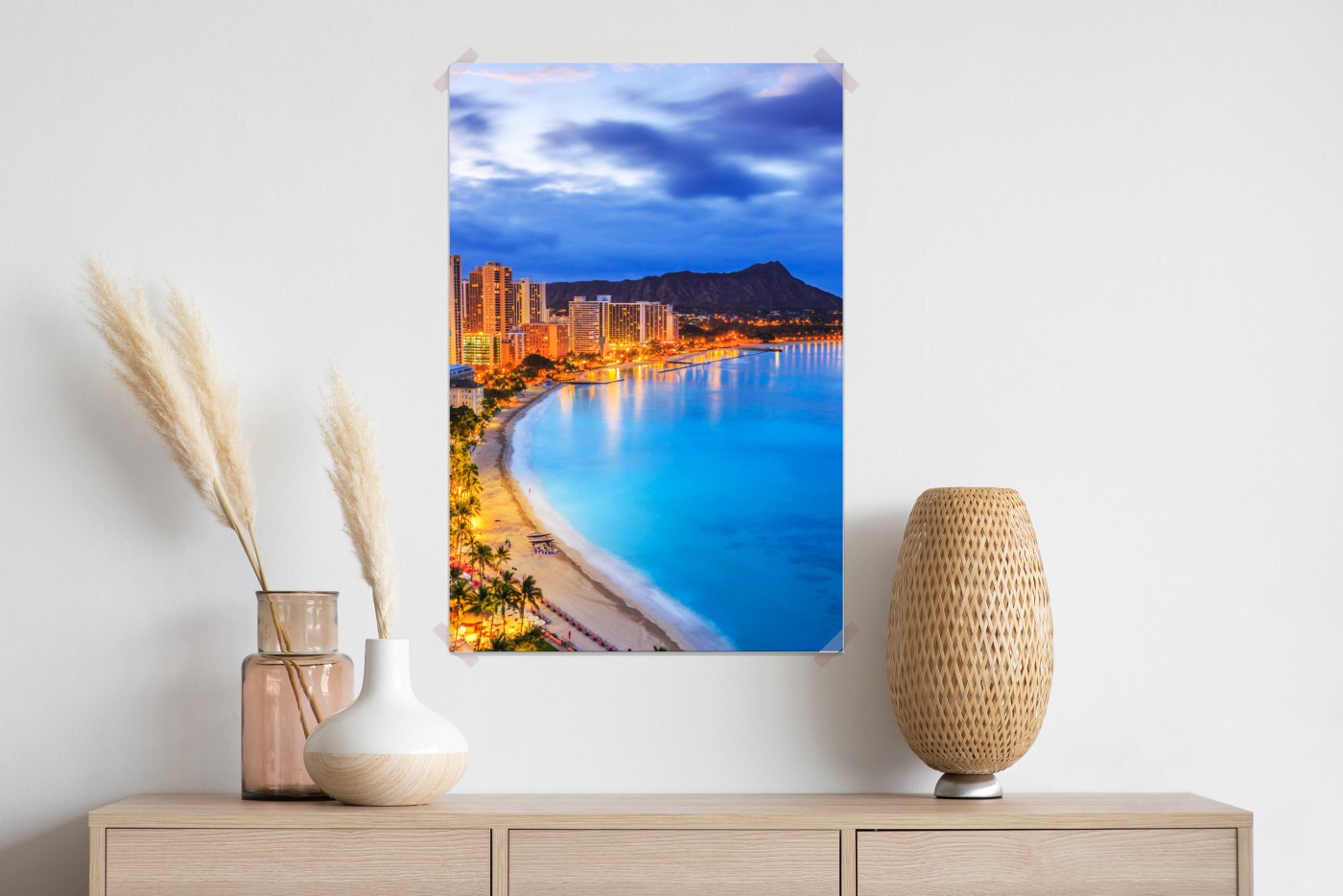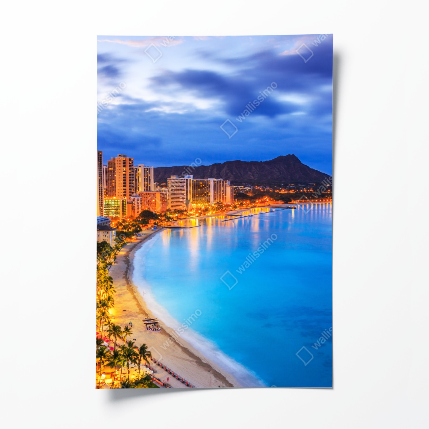 Plakat panorama Waikiki i Diamond Head o zmierzchu – Wallissimo®