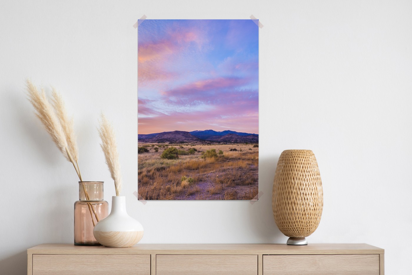 Plakat Pastelowy zachód słońca nad pustynnymi górami