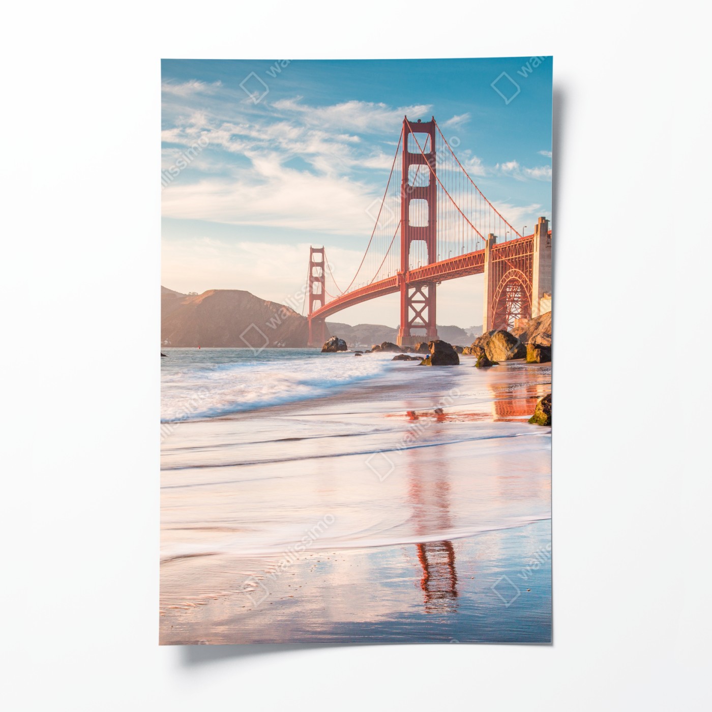 Plakat San Francisco Golden Gate o zachodzie słońca