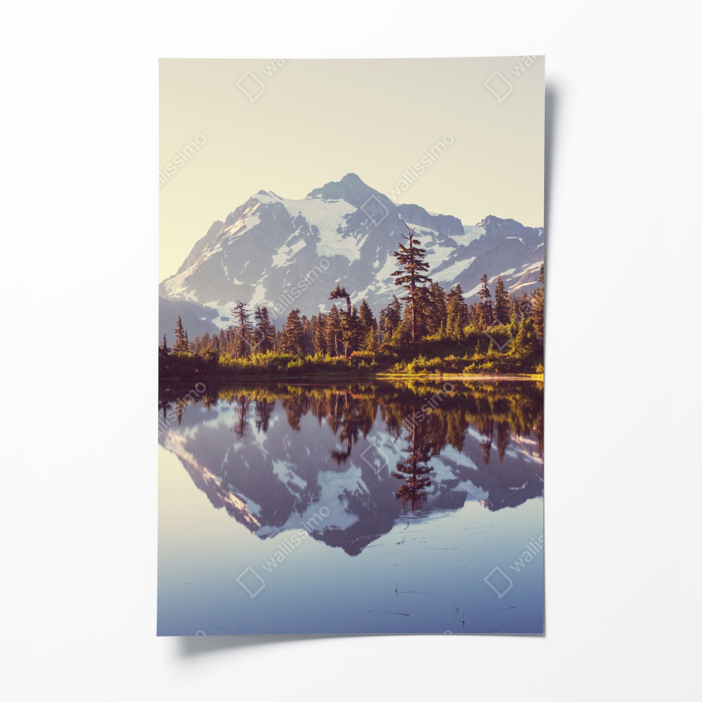 Plakat odbicie Mount Shuksan na górskim jeziorze – Wallissimo®