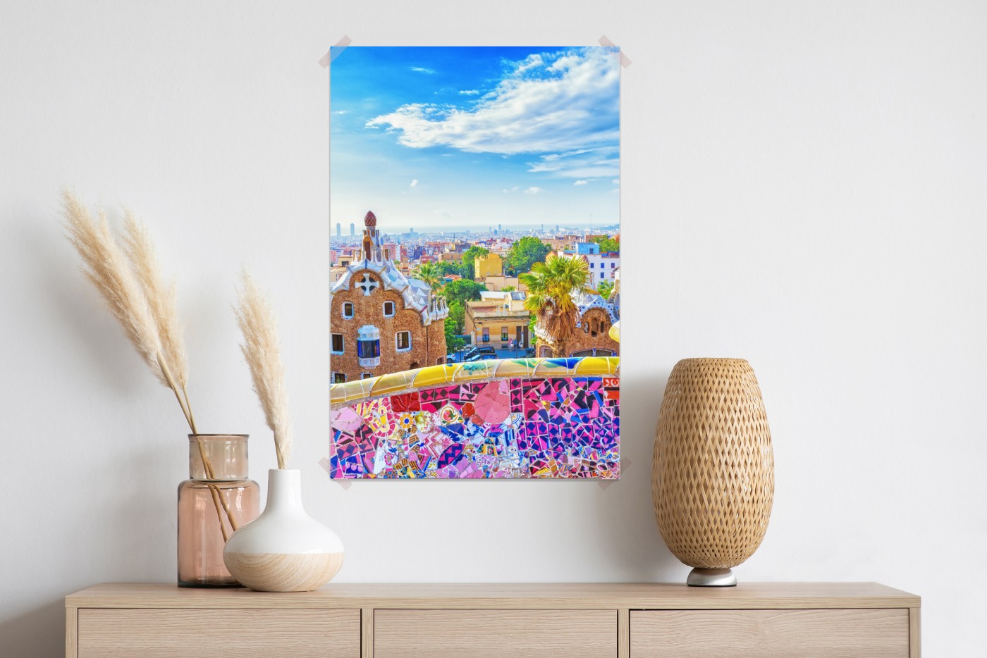Plakat Żywa Barcelona Park Güell mozaikowa panorama