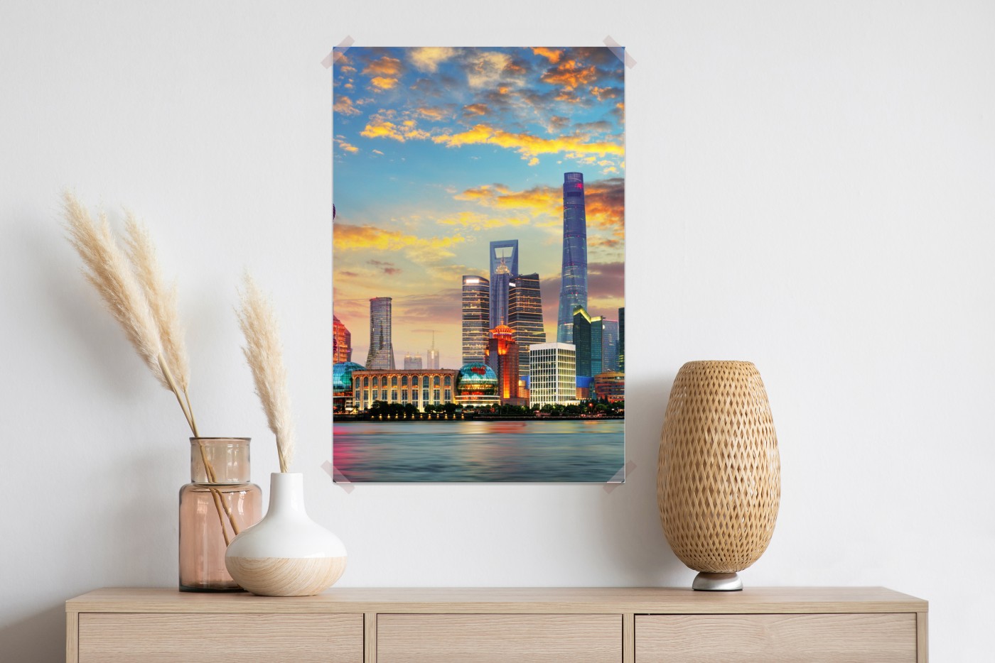 Plakat Szanghaj panorama miasta o zachodzie słońca – Wallissimo®