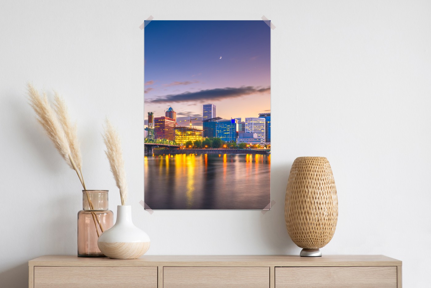 Plakat Portland panorama miasta o zmierzchu nad rzeką Willamette – Wallissimo®
