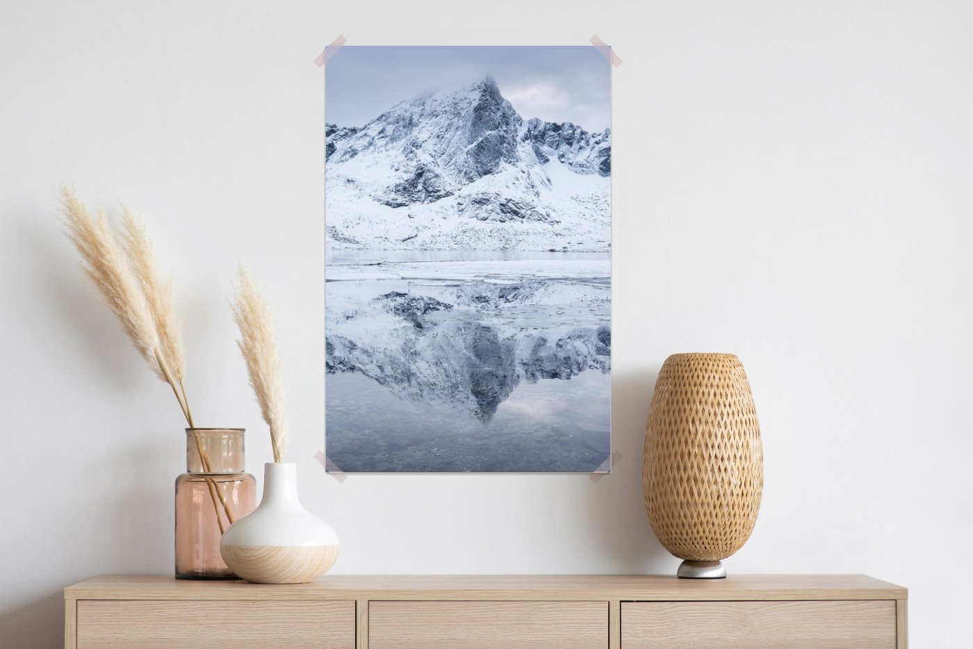 Plakat Śnieżne odbicie górskie w Norwegii