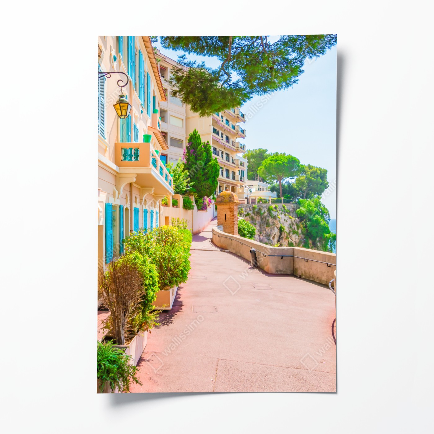 Plakat śródziemnomorska promenada z pastelowymi kamienicami – Wallissimo®