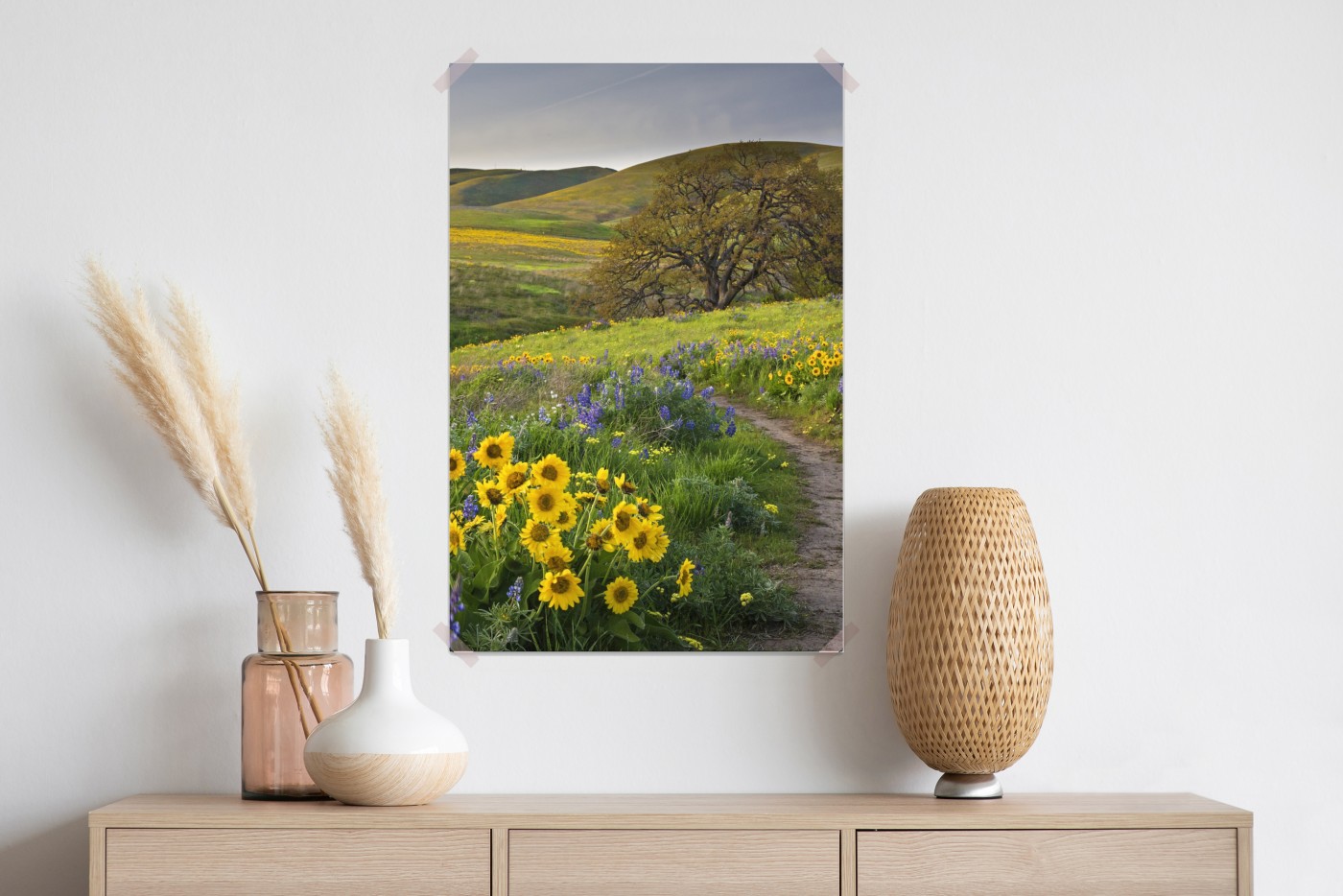 Wprowadź spokój falujących wzgórz i żywych dzikich kwiatów do swojego wnętrza dzięki tej malowniczej łące.WięcejMniej