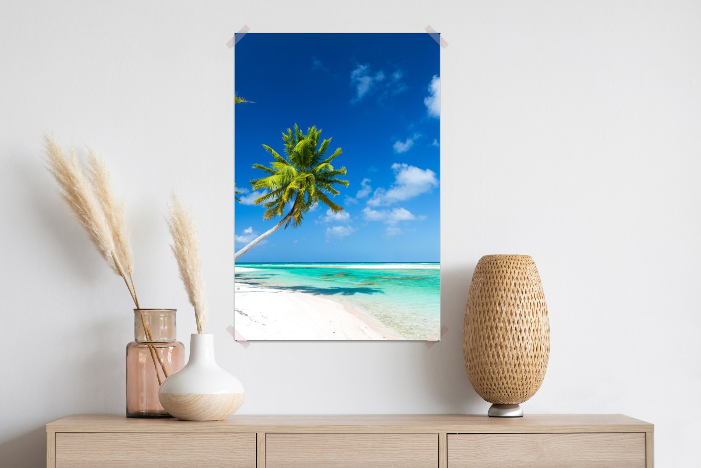 Plakat Tropikalna plaża z palmami i turkusową wodą