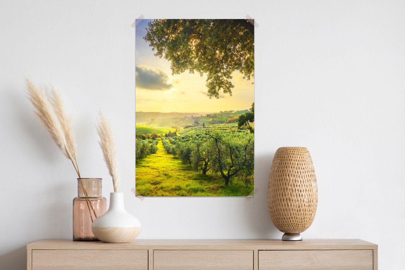 Wprowadź ciepło toskańskiej prowincji do wnętrza dzięki panoramicznemu widokowi na gaje oliwne o zachodzie słońca.WięcejMniej