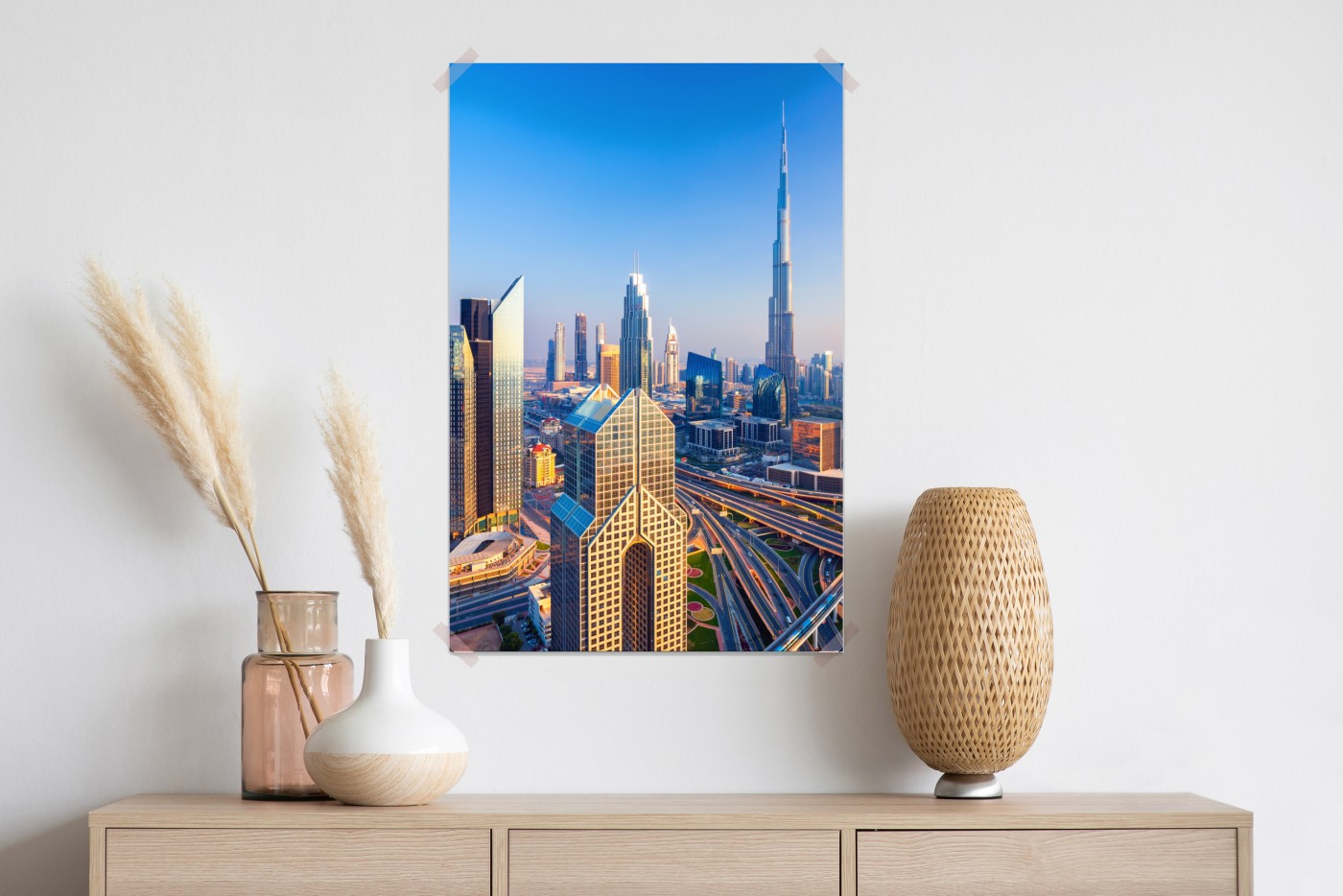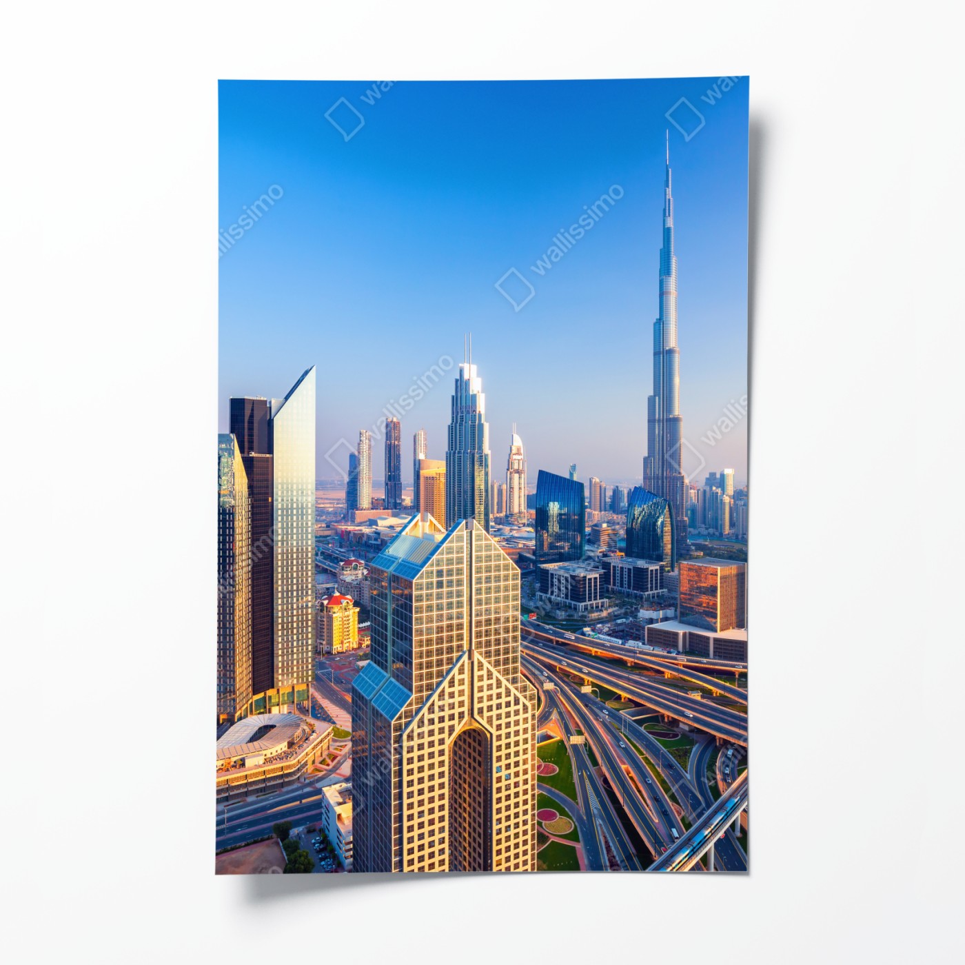 Plakat Panorama Dubaju z Burj Khalifa o zachodzie słońca