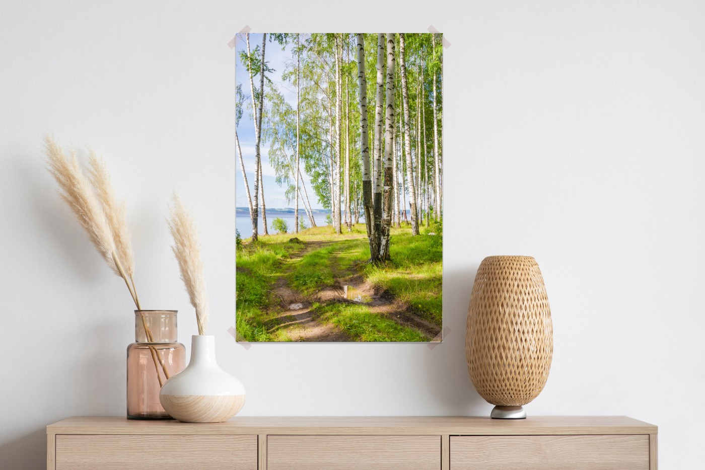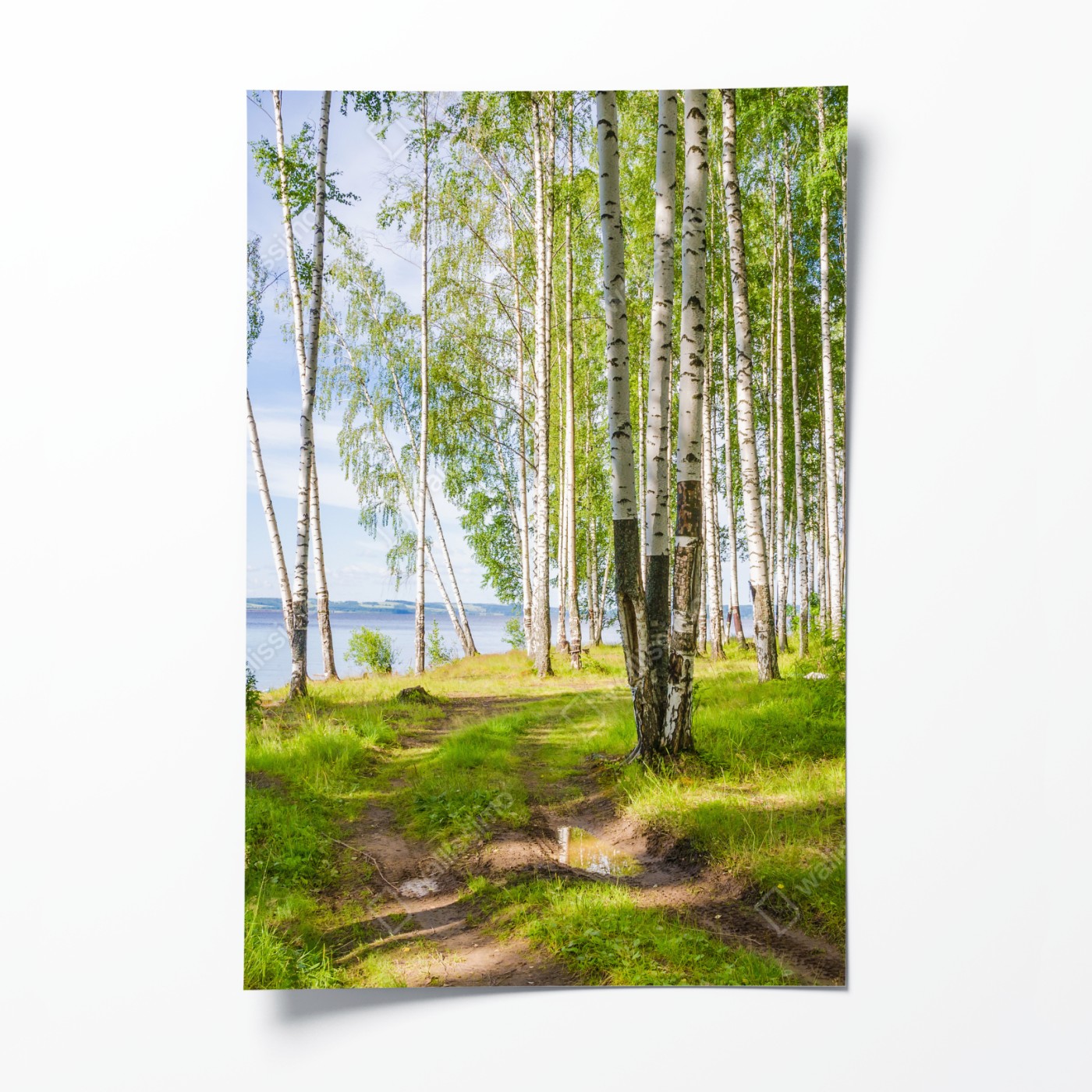 Plakat Słoneczny zagajnik brzozowy nad wodą