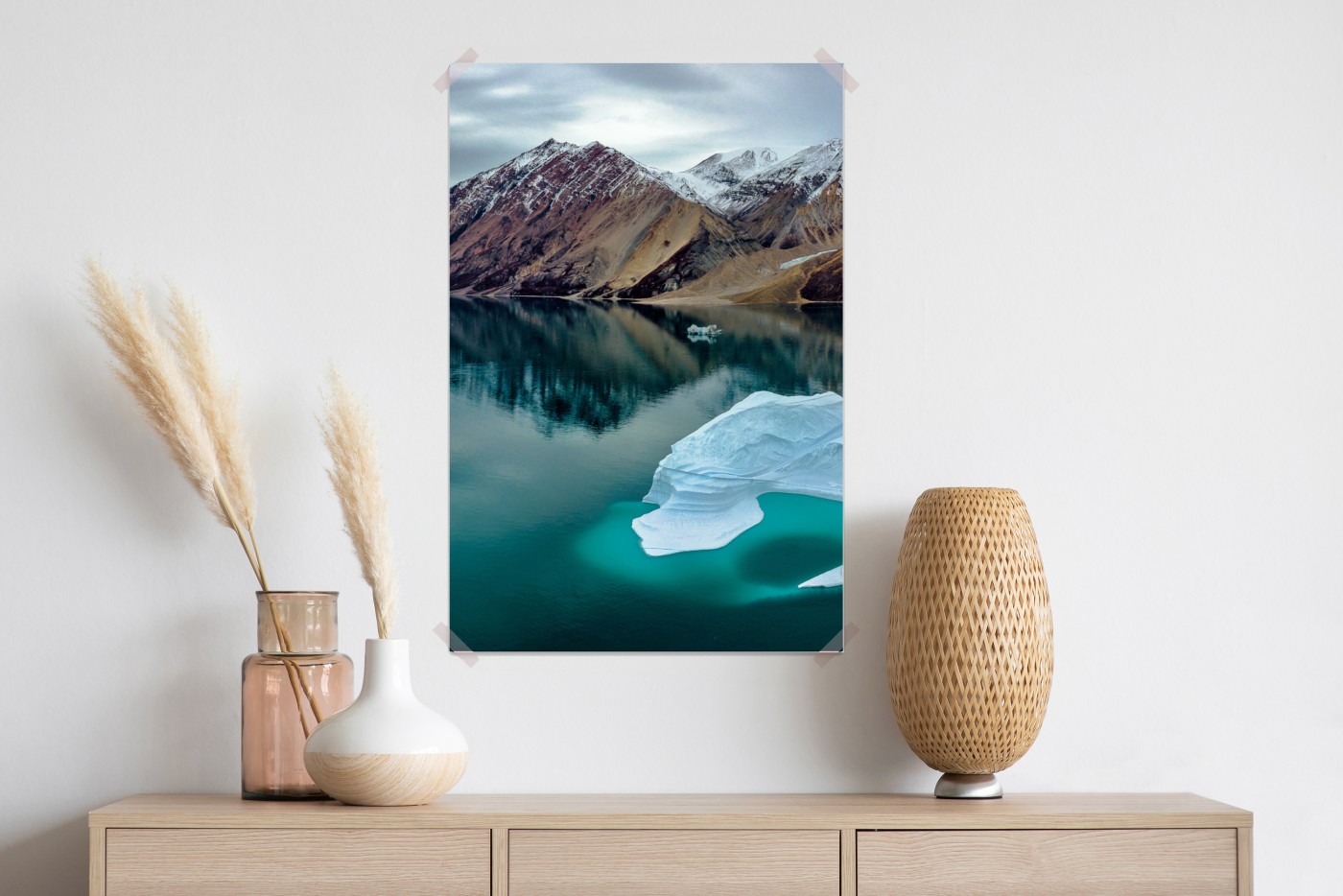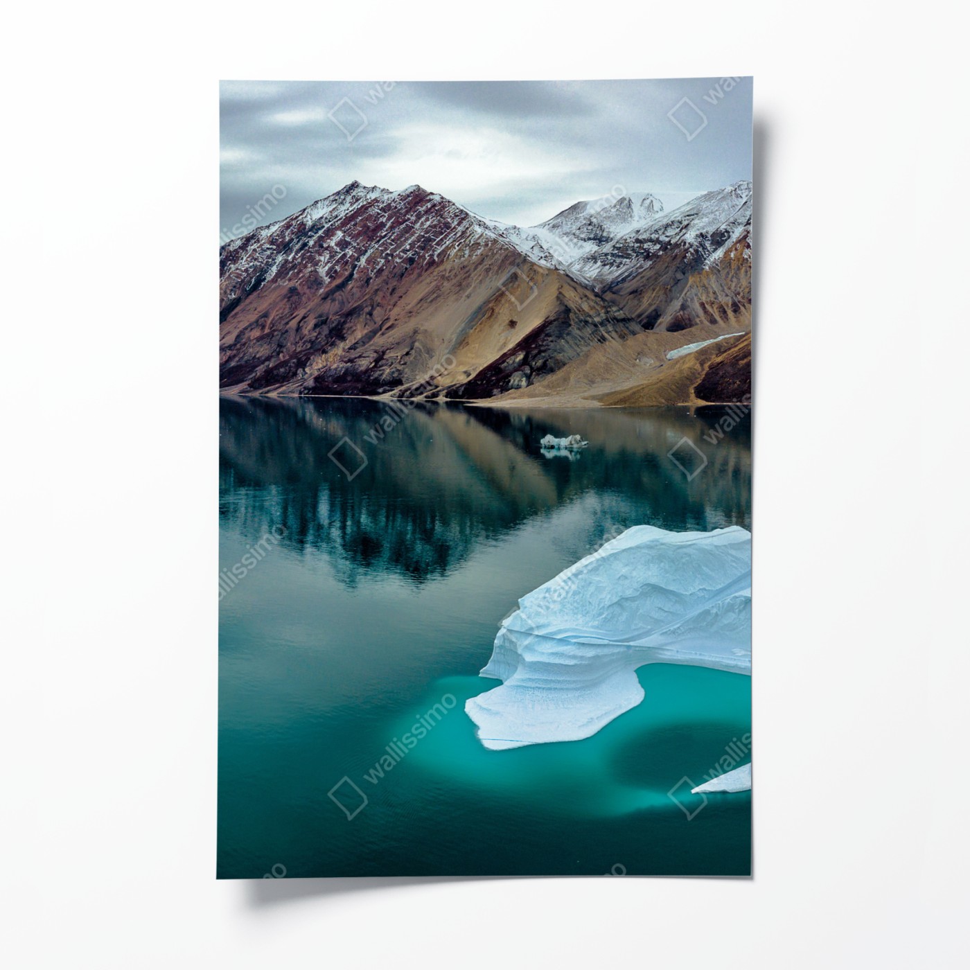 Plakat Góra lodowa i odbicia gór w turkusowej wodzie