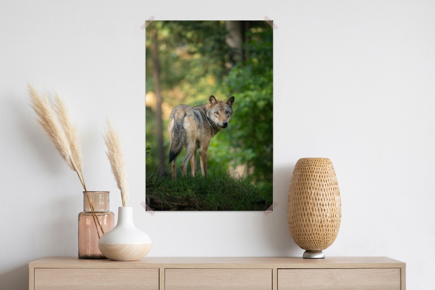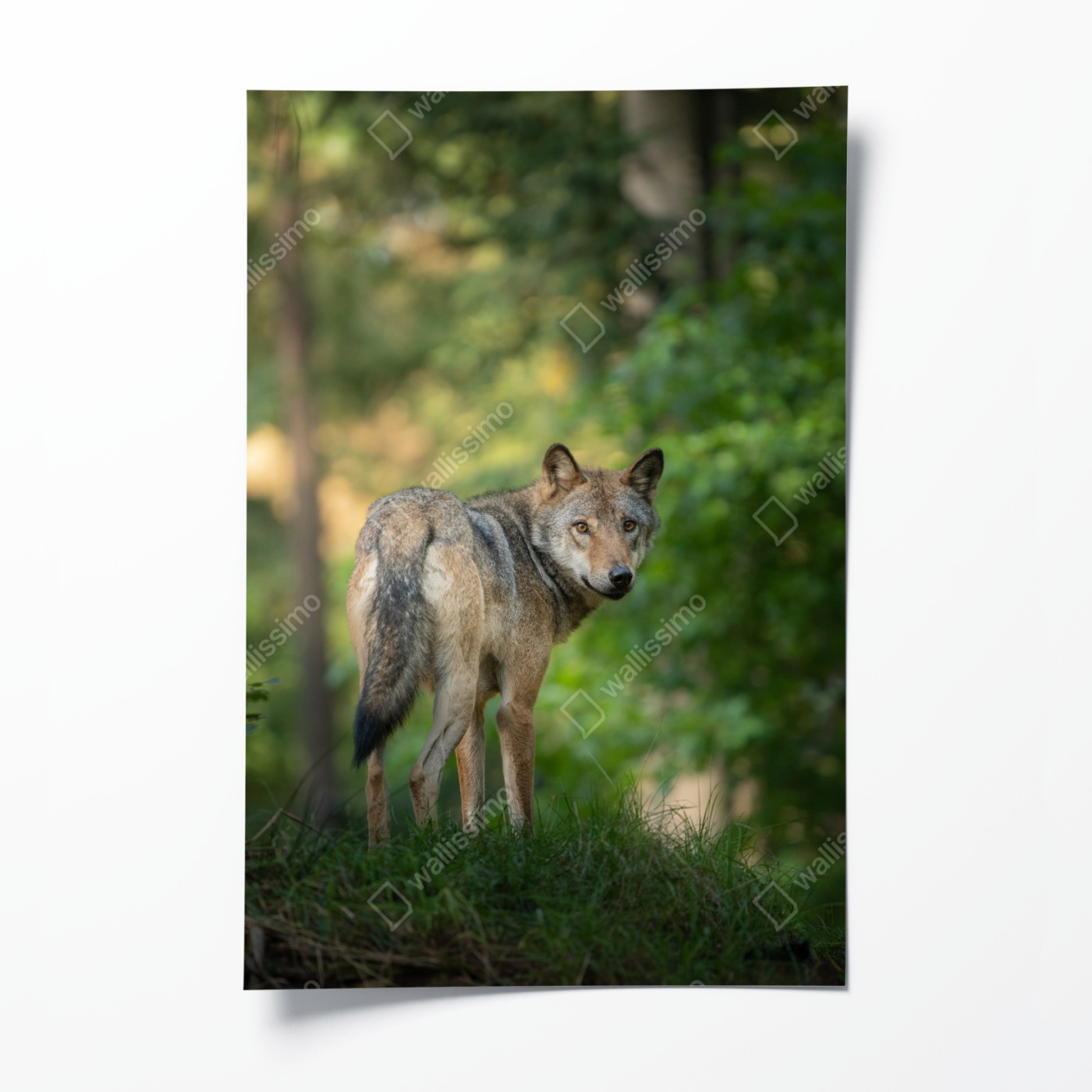 Plakat Wilk w leśnej polanie