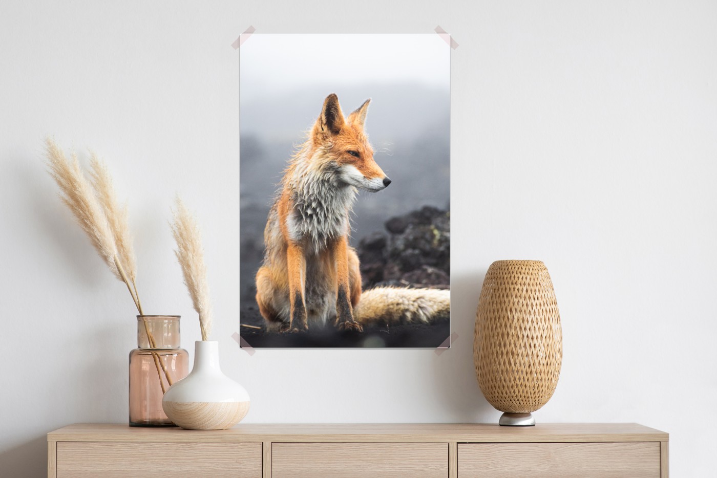 Plakat Rudy lis w mglistym krajobrazie