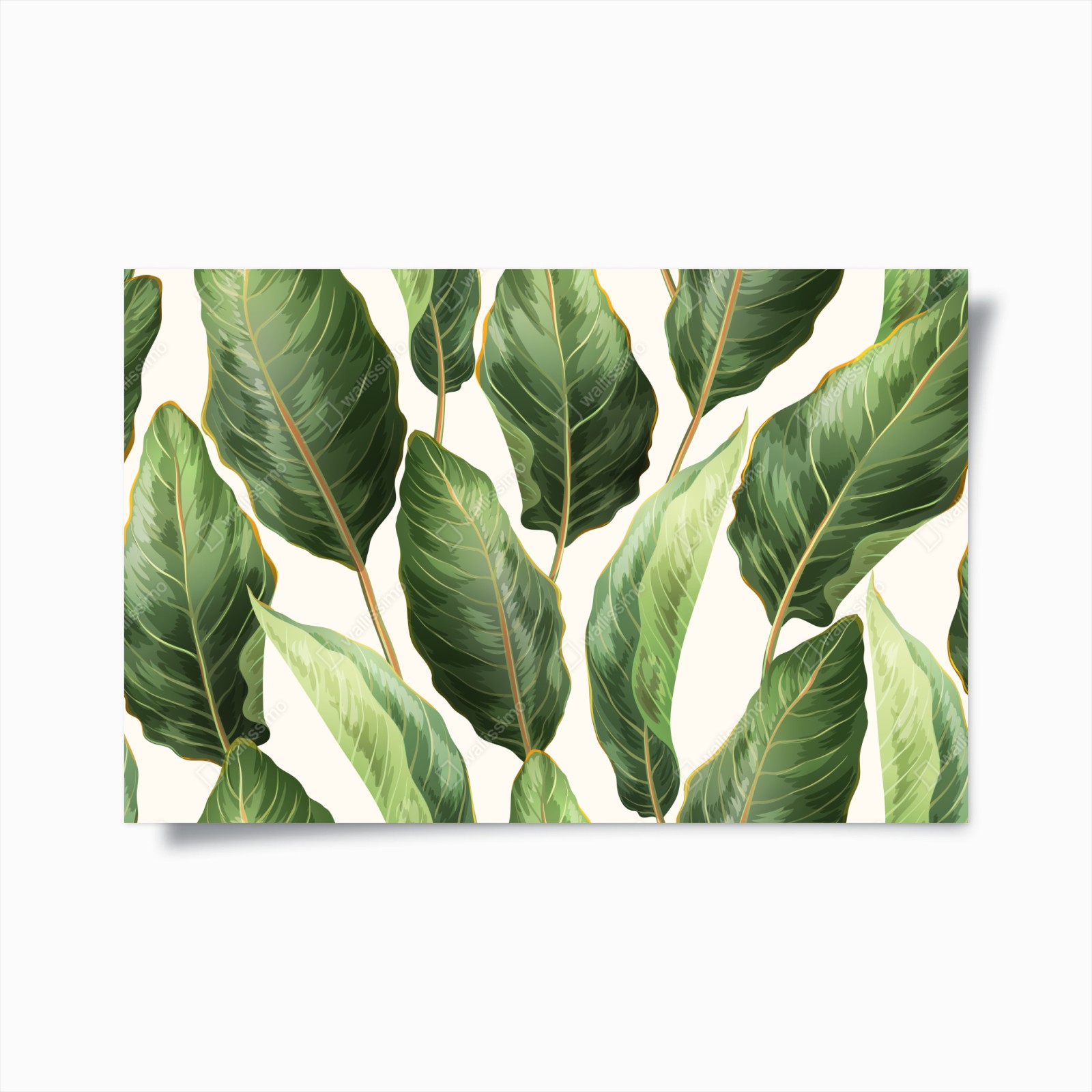 - dżungla, zielone liście, tropikalne liście, aranżacja wnętrz, tapeta bezszwowa, botaniczny wzór, ilustracja liści, bananowe liście, wzór tropikalny, egzotyczne liście