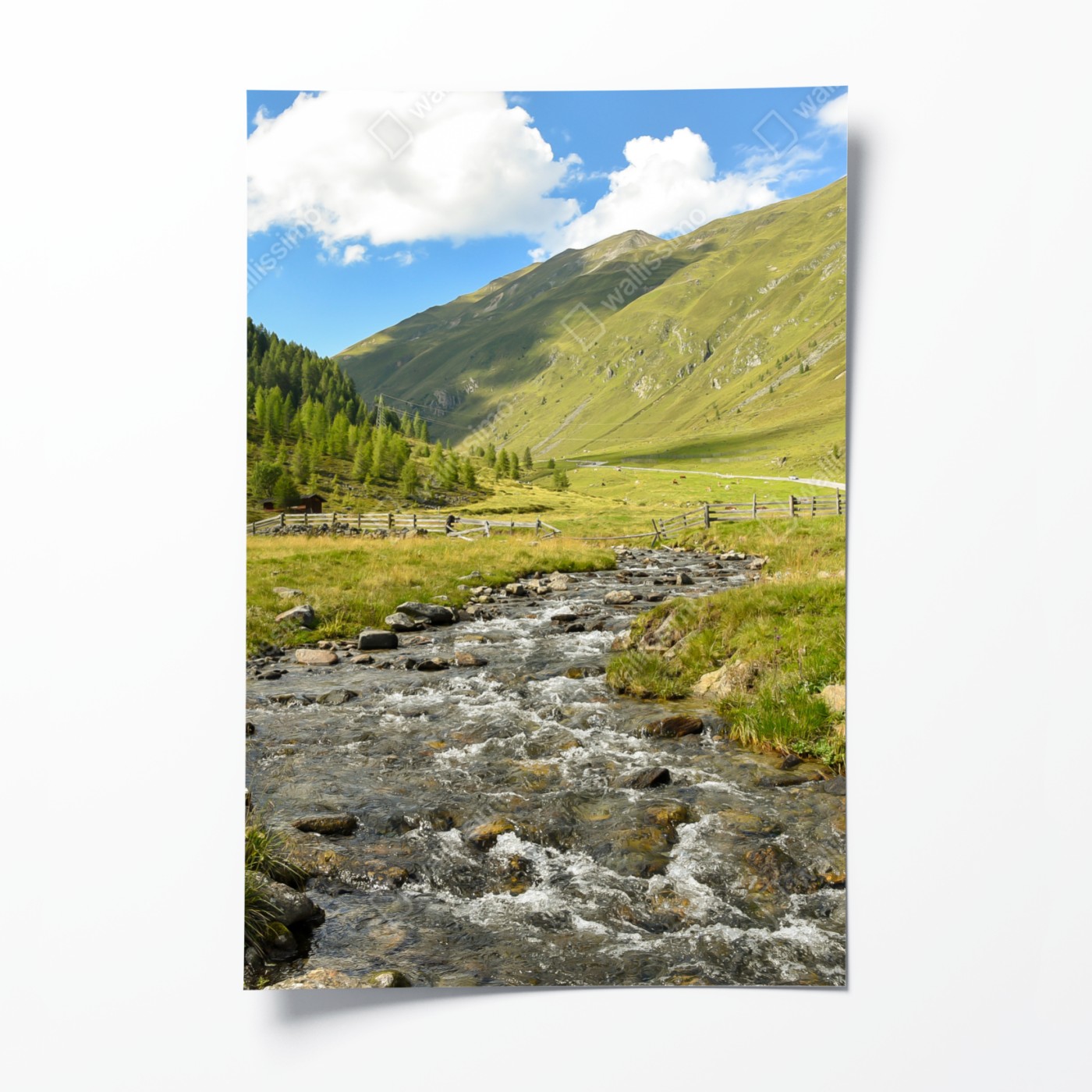 Plakat alpejski strumień w słonecznej dolinie – Wallissimo®