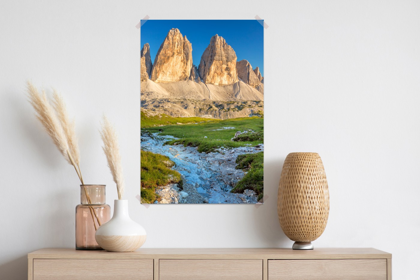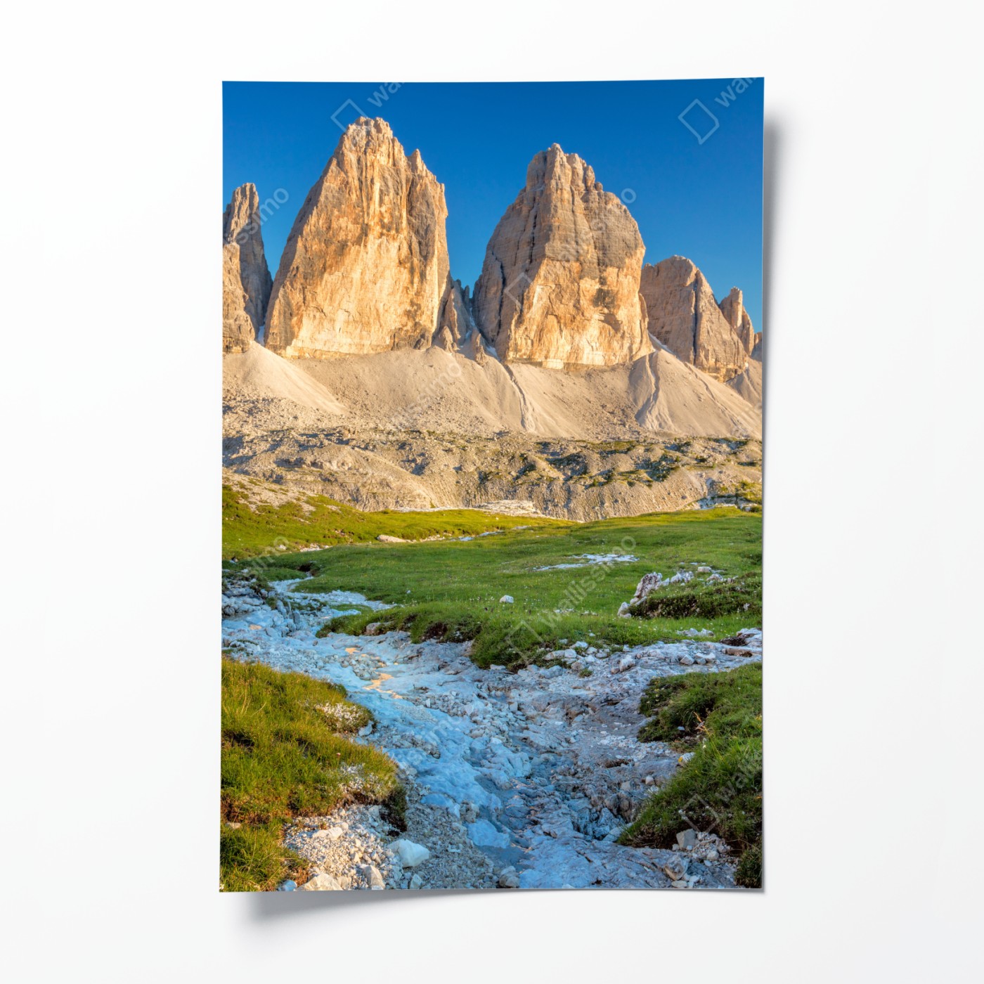 Plakat Tre Cime di Lavaredo nad alpejską łąką