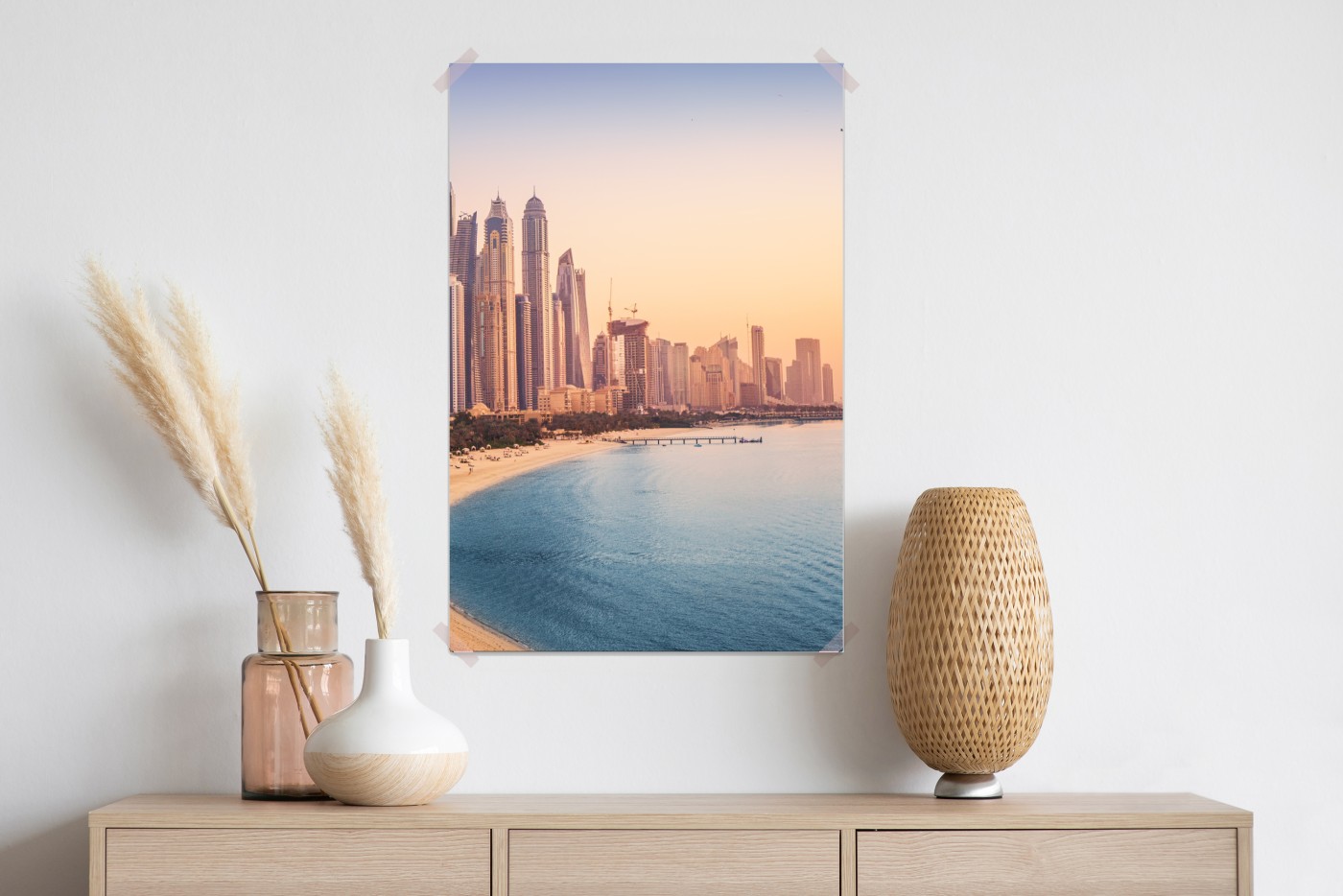 Plakat Dubaj panorama miasta o zachodzie słońca – Wallissimo®